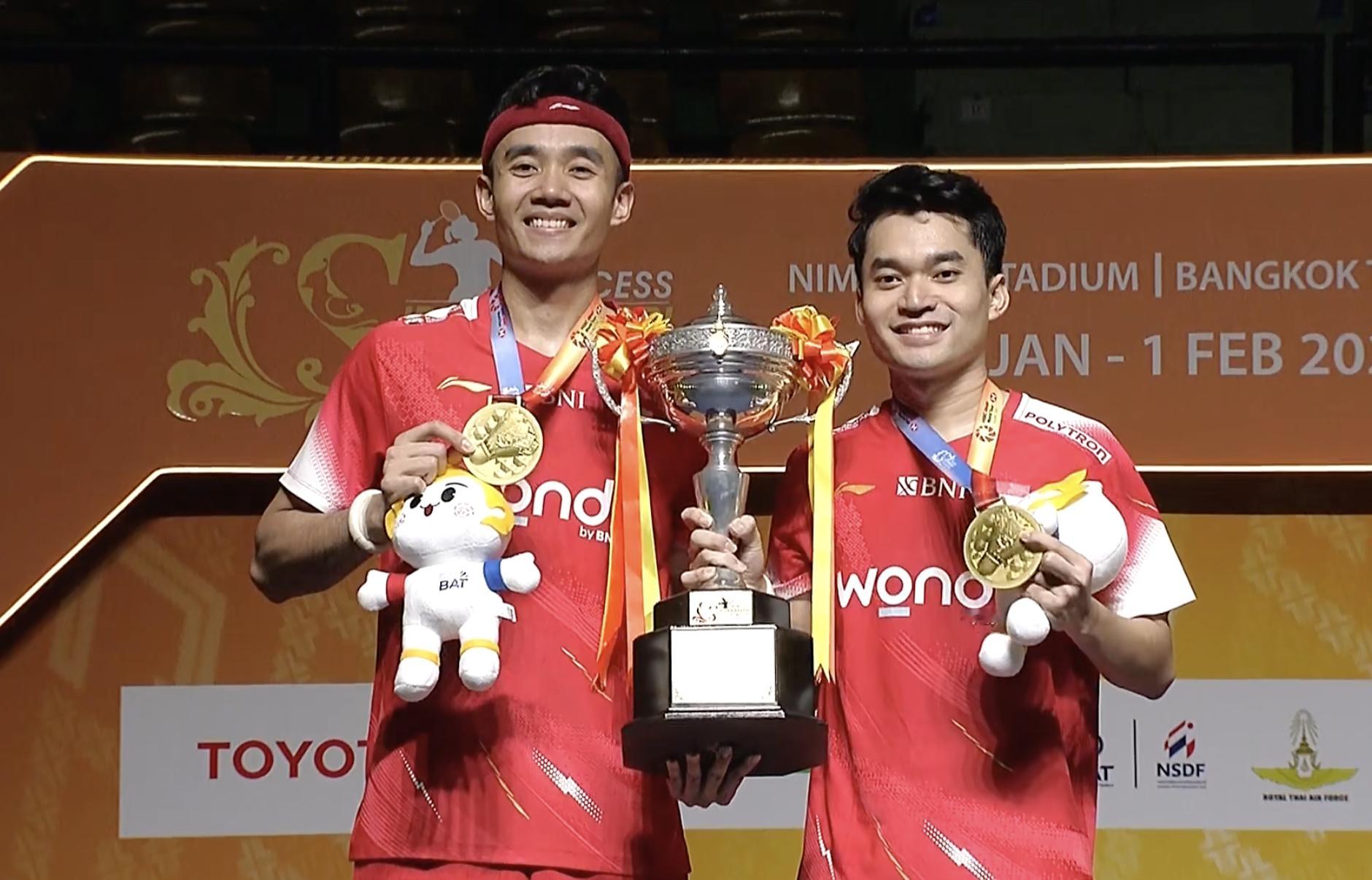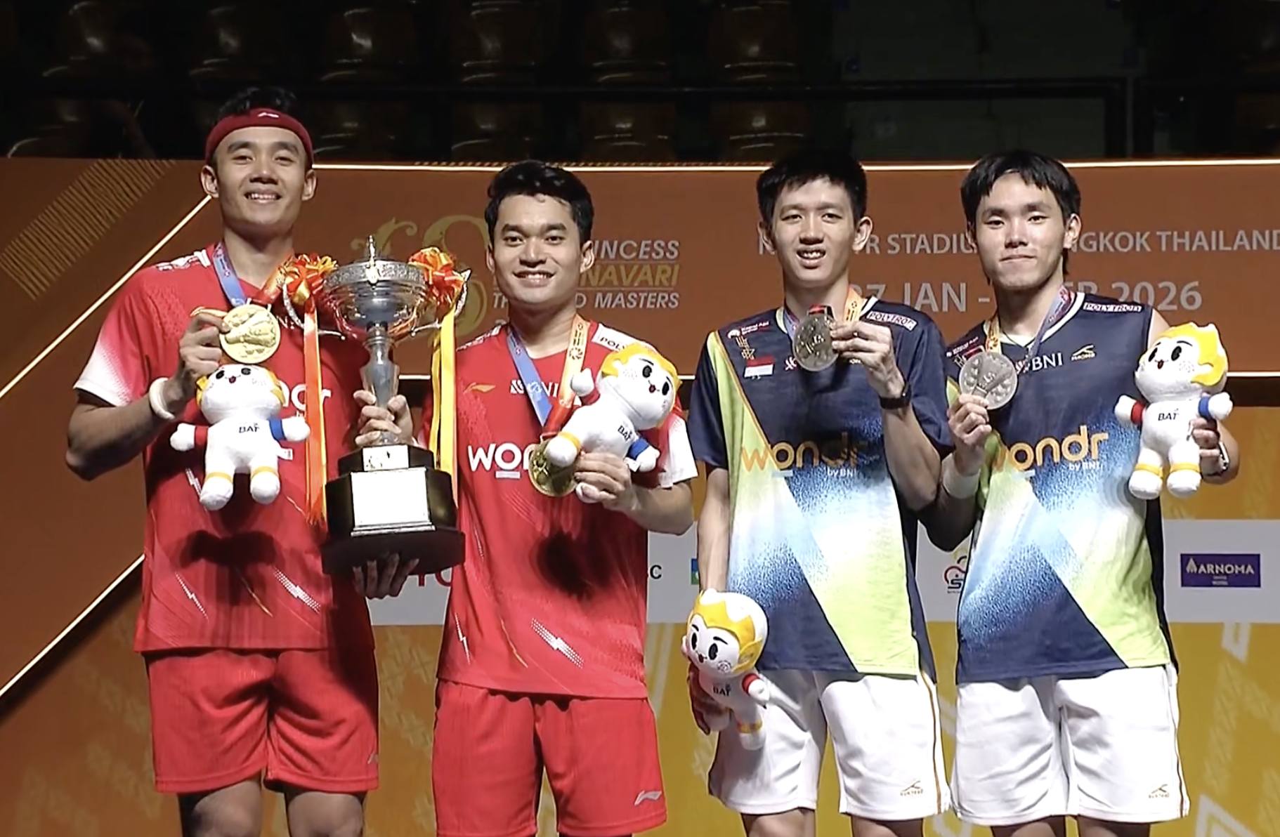 🏆男双冠军:卡尔南多/毛拉纳🇮🇩🥈男双亚军:因陀罗/华金🇮🇩恭喜四位!🎉🎉🎉2026年泰国羽毛球大师赛