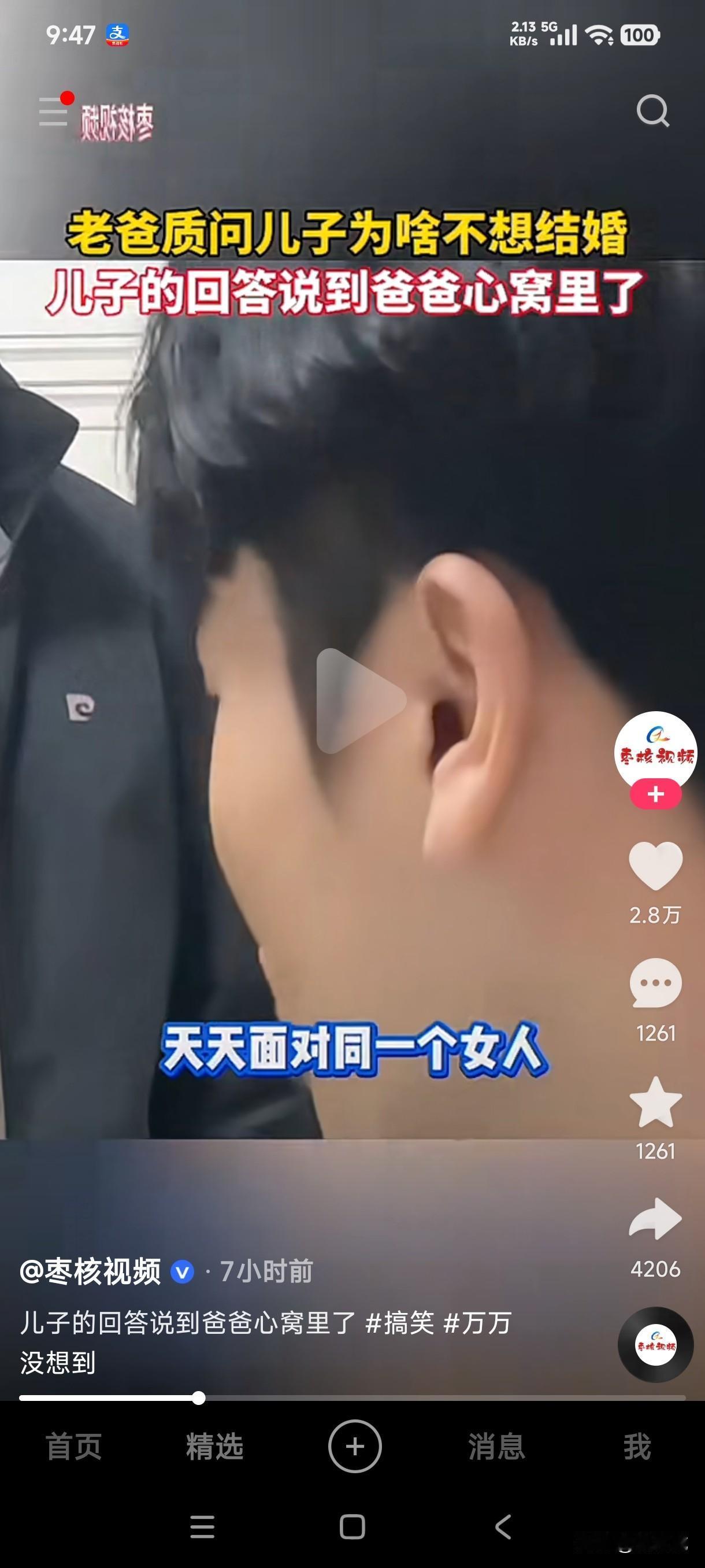 老爸质问儿子为什么不结婚,结果儿子的回答直戳爸爸心窝子,你天天面对同一个女人你心里什么滋味?话音刚落爸爸妈妈却打起来了。 果然还是男人最懂男人,从小就见证了父母婚姻的絮絮叨叨,以至于长大后连婚都不想结了,爸爸压抑在心里不敢说的话却被儿子给说出口了,爸爸觉得儿子说的话也不是没有道理,不结婚就不结婚吧,谁能想到这话居然被妈妈给听见了,顿时心生不满,当即和爸爸干了起来,这爸爸当的也不舒心,这儿子当的更惨是不是? 生活中各有各的难以言衷,结婚有结婚的压抑,不结婚有不结婚的苦不是吗?