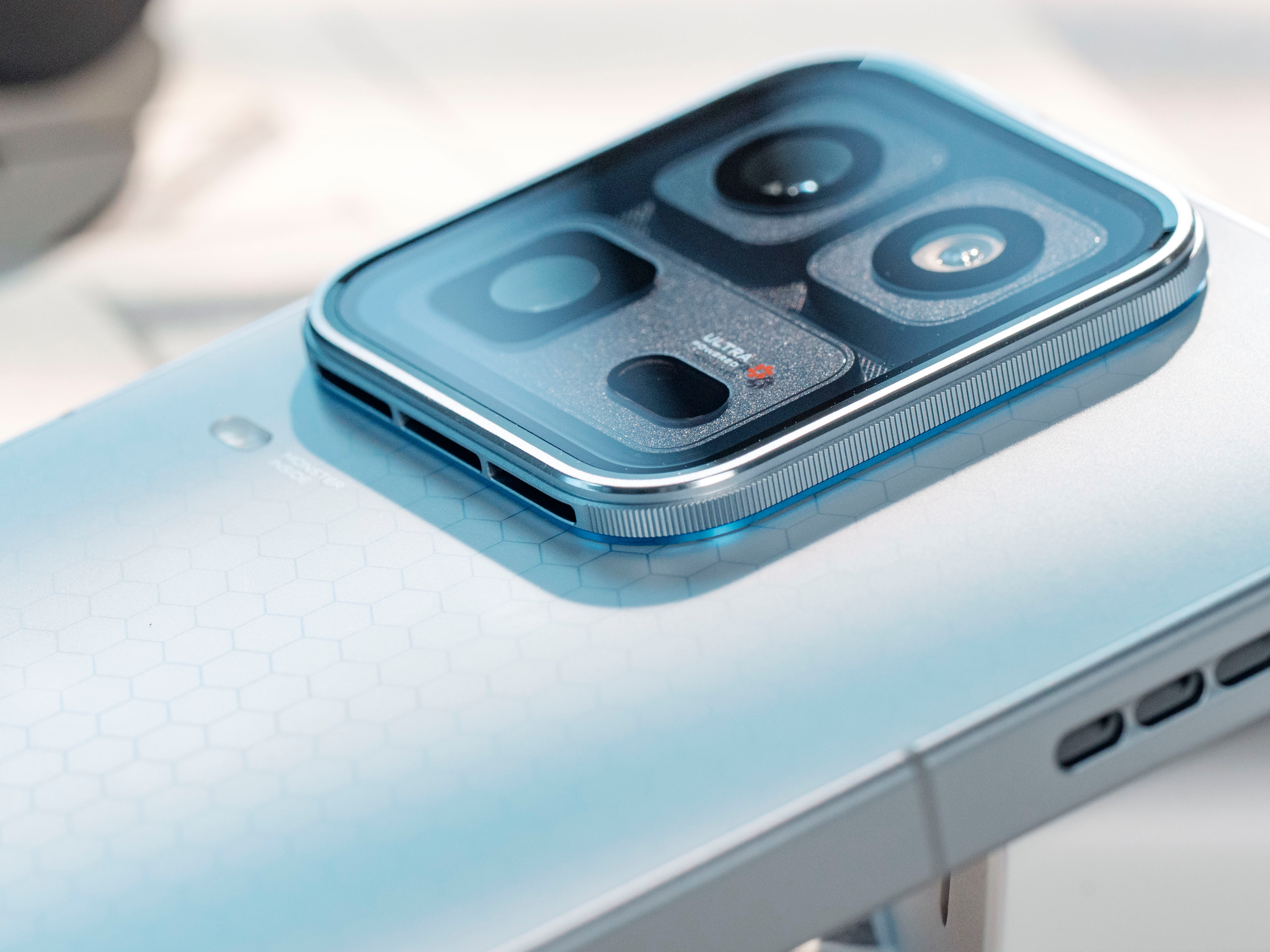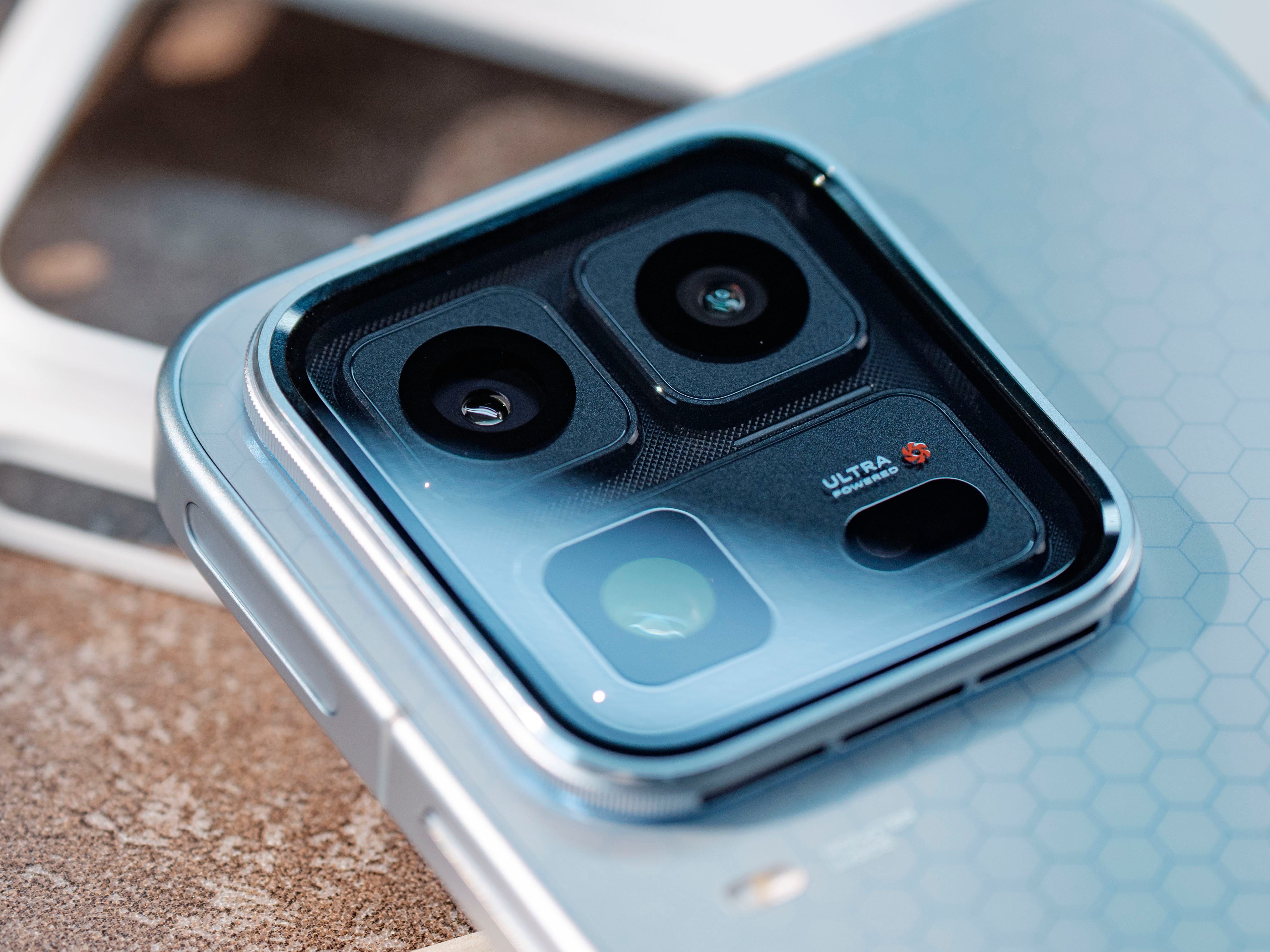 背部的蜂巢纹理矩阵真的很有意思,不仅好看,而且在特殊的角度还会呈现若隐若现的蓝色纹路,当然还有很多小设计,呼吸灯、模组的Ultra专属标识......大家上手一定要亲自感受一下!