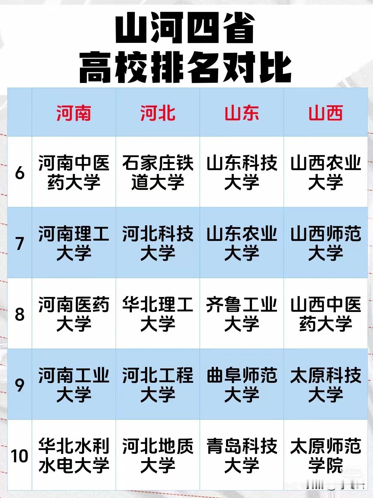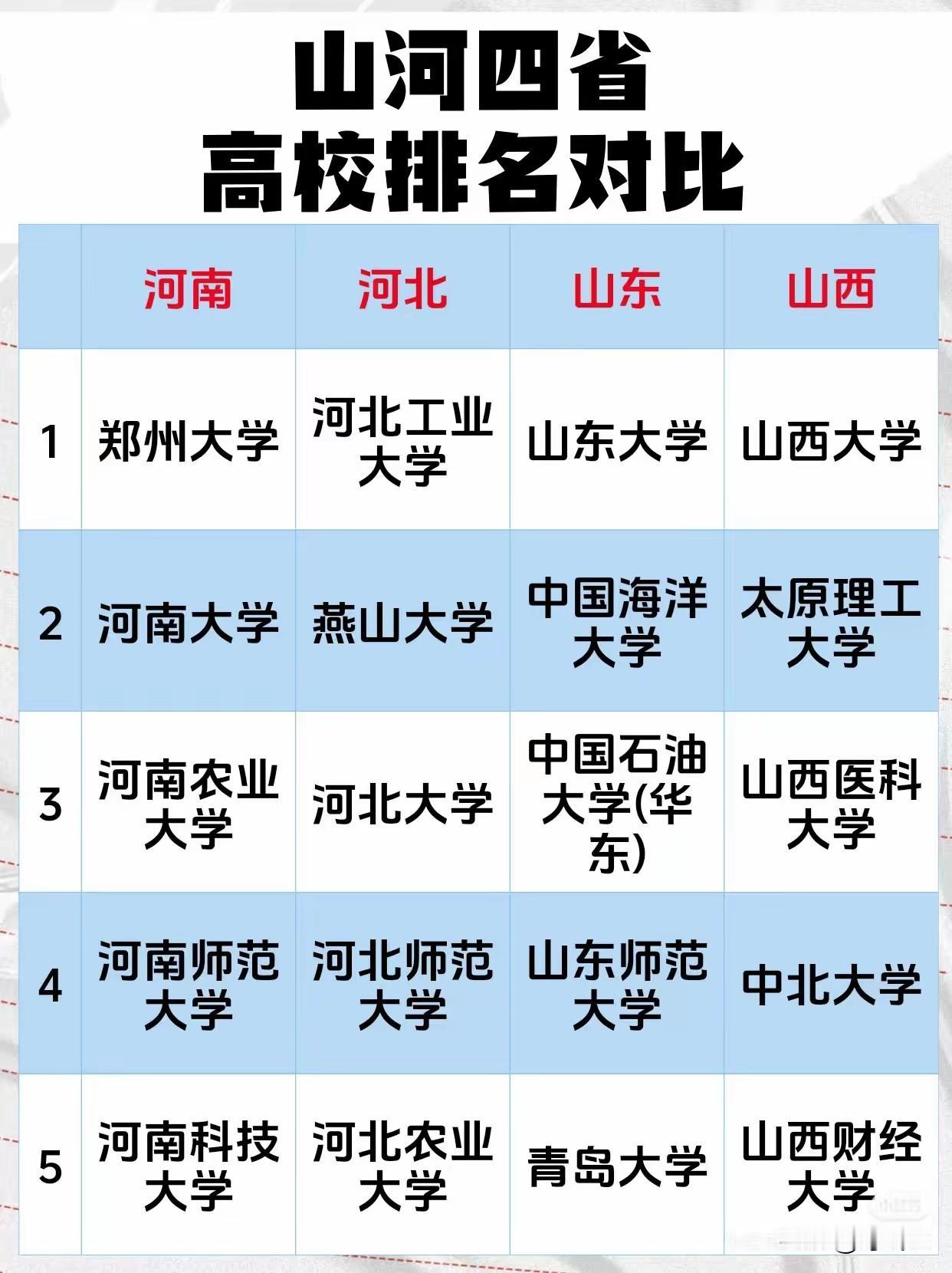 河南VS山东!山河四省前6位高校比拼汇总揭秘!看看哪个省的高校更优秀?河南省双一流高校有郑州大学和河南大学!山东省、山西省,河北省双一流又有哪些高校?欢迎补充和留言交流讨论相关话题![点亮平安灯][点亮平安灯][烟花][烟花] [加一]第一名:山东大学VS郑州大学VS河北工业大学VS山西大学! [加一]第二名:河南大学VS中国海洋大学VS太原理工大学VS燕山大学!速速围观揭秘详细内容! 欢迎关注@叮咚云 将优先为粉丝职业规划指导,为你定制最适合的就业择业方案!欢迎留言交流讨论。[来看我][来看我] 免责声明:图片来自网络,仅供参考! 央国企招聘国企招聘国企招聘