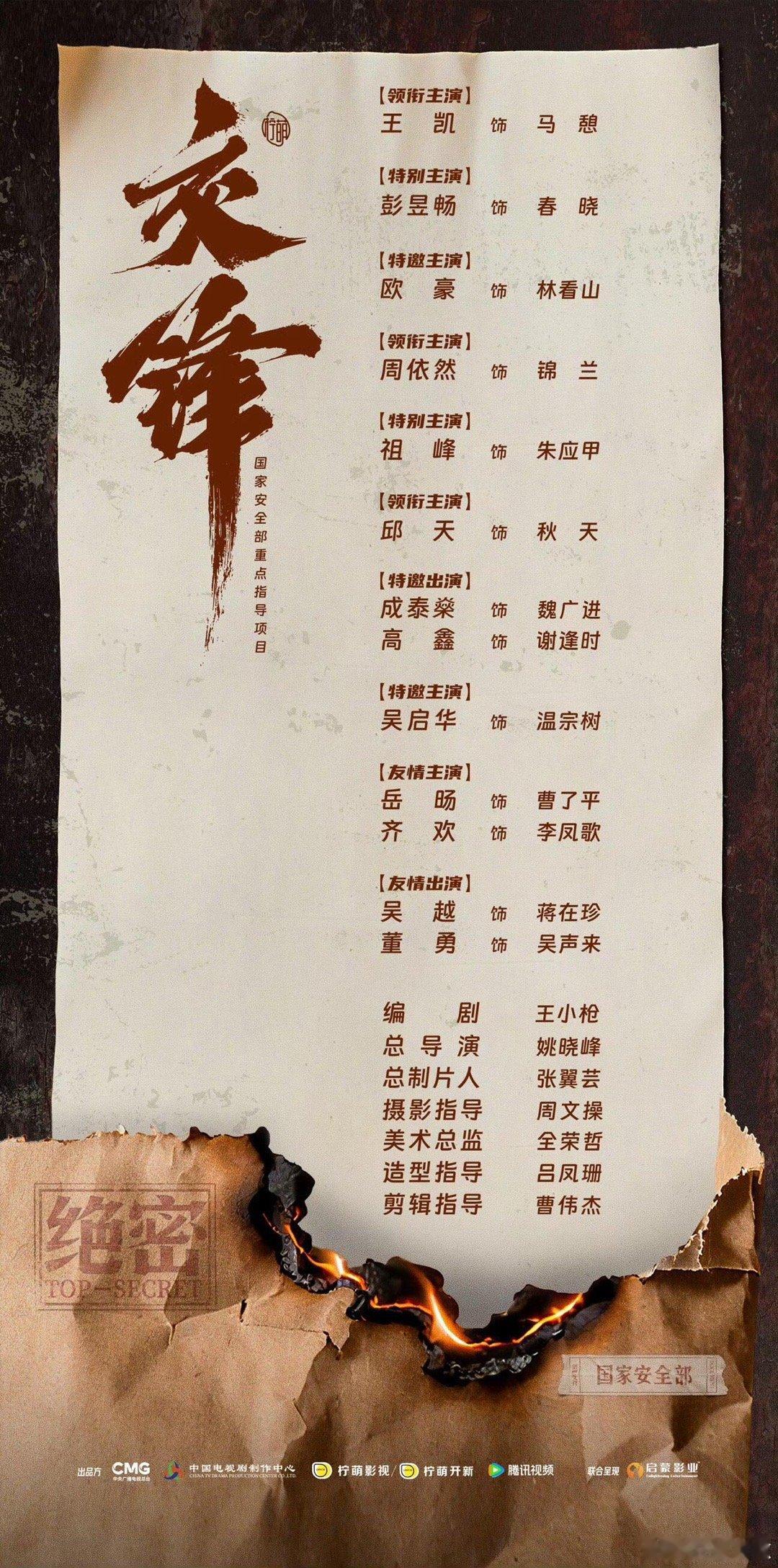 不知道反正这剧班底很曼妙 《交锋》这配置谁看了不喊绝!顶配幕后团队+王凯彭昱畅欧豪神仙阵容,全员演技派演绎二十年国安暗战。四月精心拍摄,细节质感全在线,暗战博弈超有看点,已经狠狠蹲住开播了!