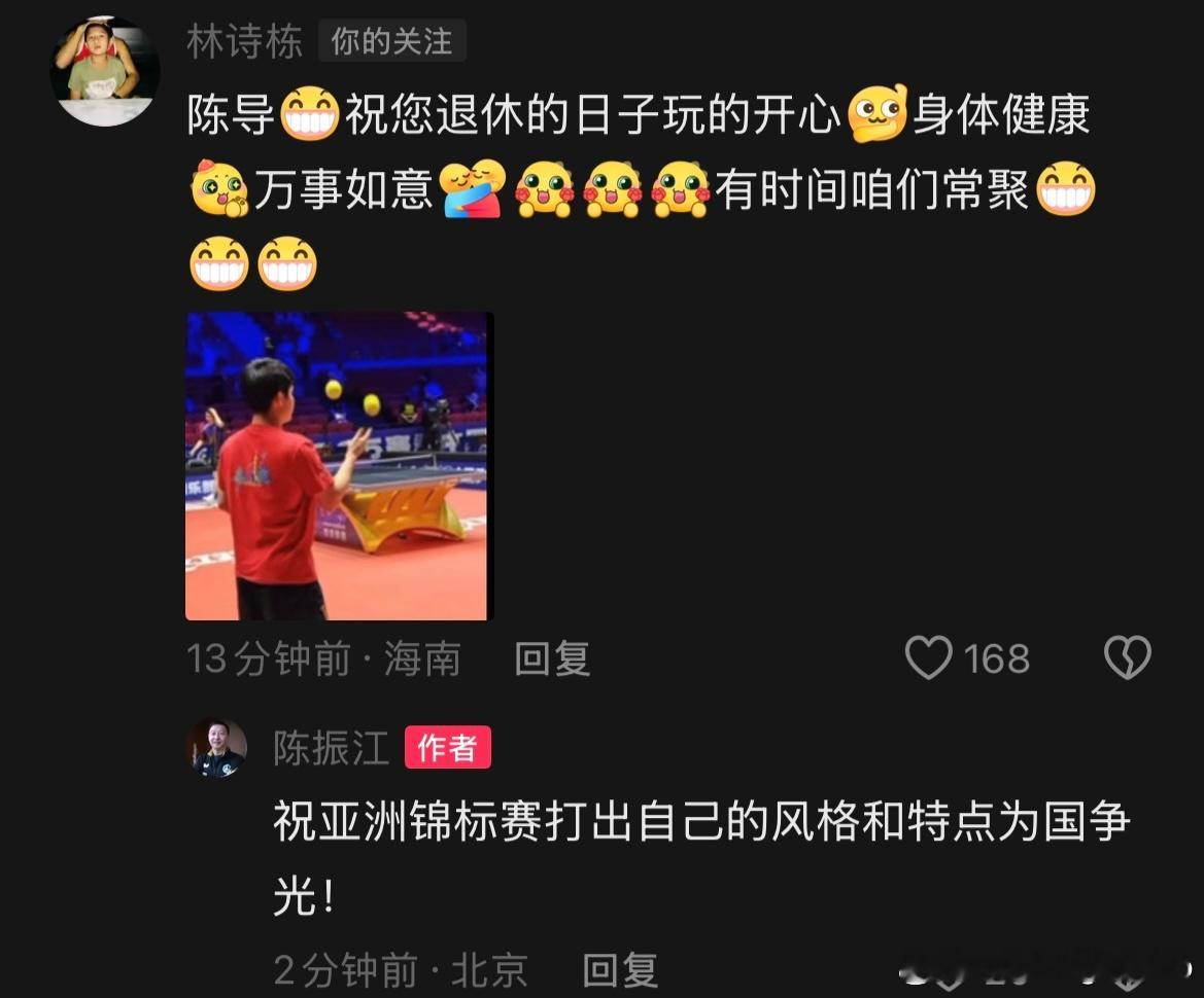 林诗栋评论:陈导祝您退休的日子玩的开心身体健康万事如意有时间咱们常聚