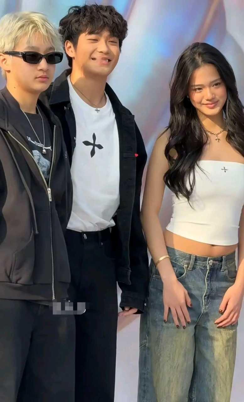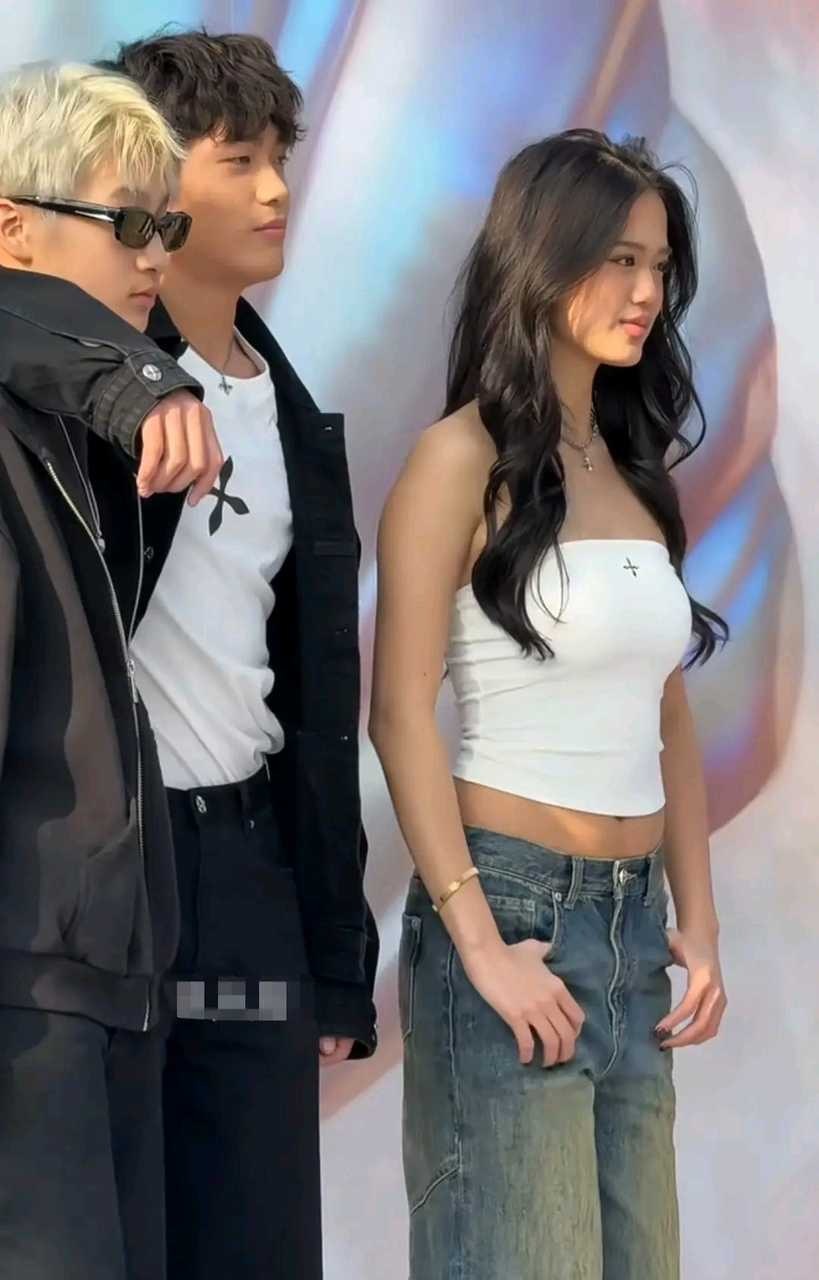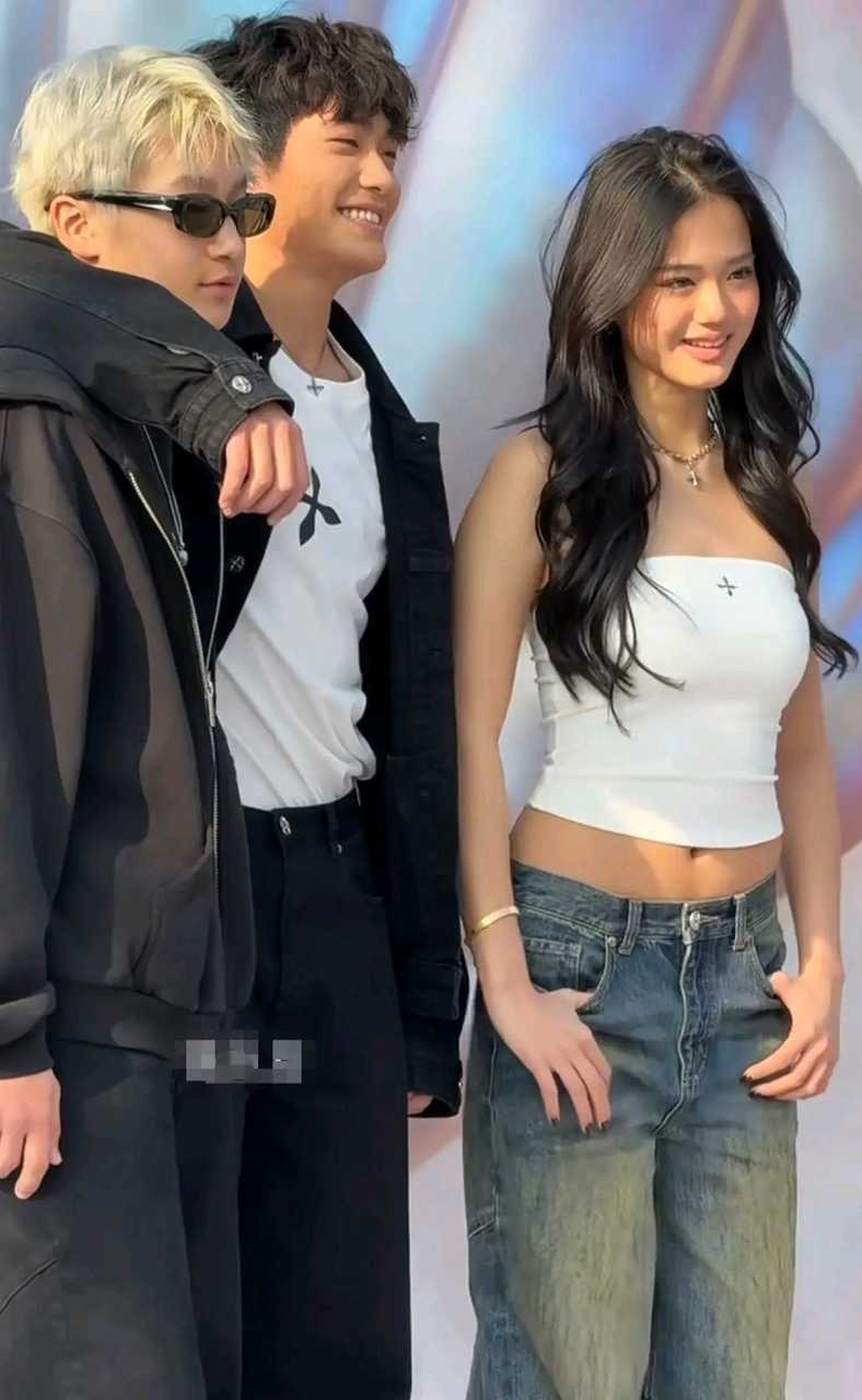 张天爱跟素人合影,胯真的好宽,大宅院似的