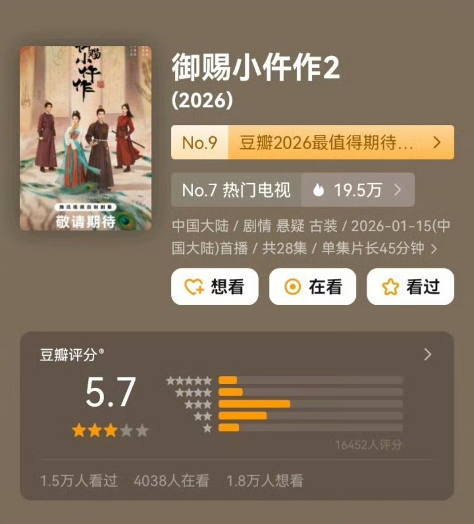 《御赐小仵作2》豆瓣5.7,连口碑也吹不了