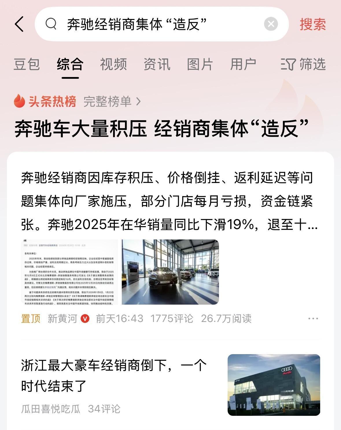 奔驰140岁生日也有烦心事 被爆经销商集体“造反 主要原因还是 库存积压、价格倒挂、返利延迟 导致部分经销商出现每月都在亏损 2025年奔驰在中国销量同比下滑19% 是BBA中下滑最狠的