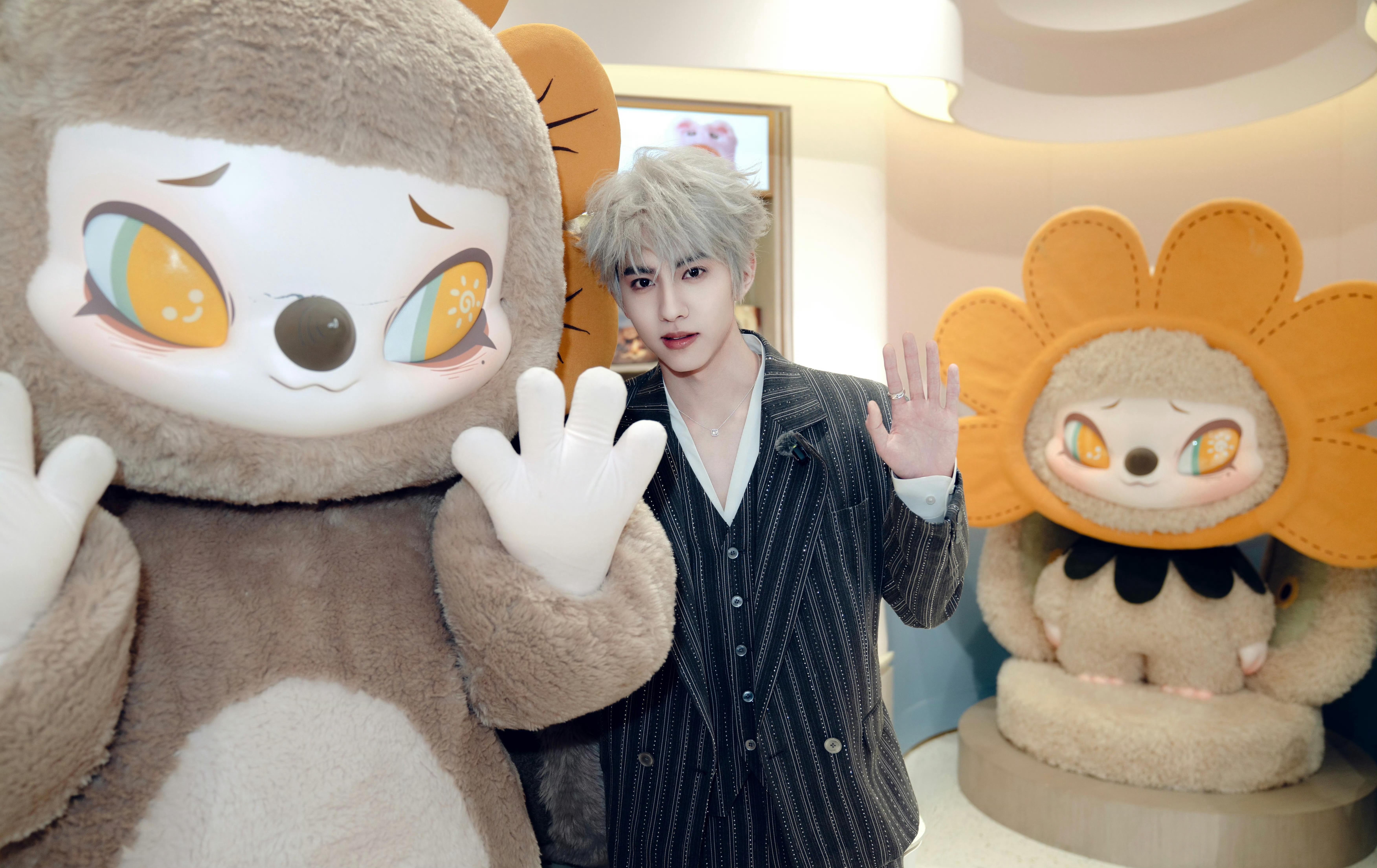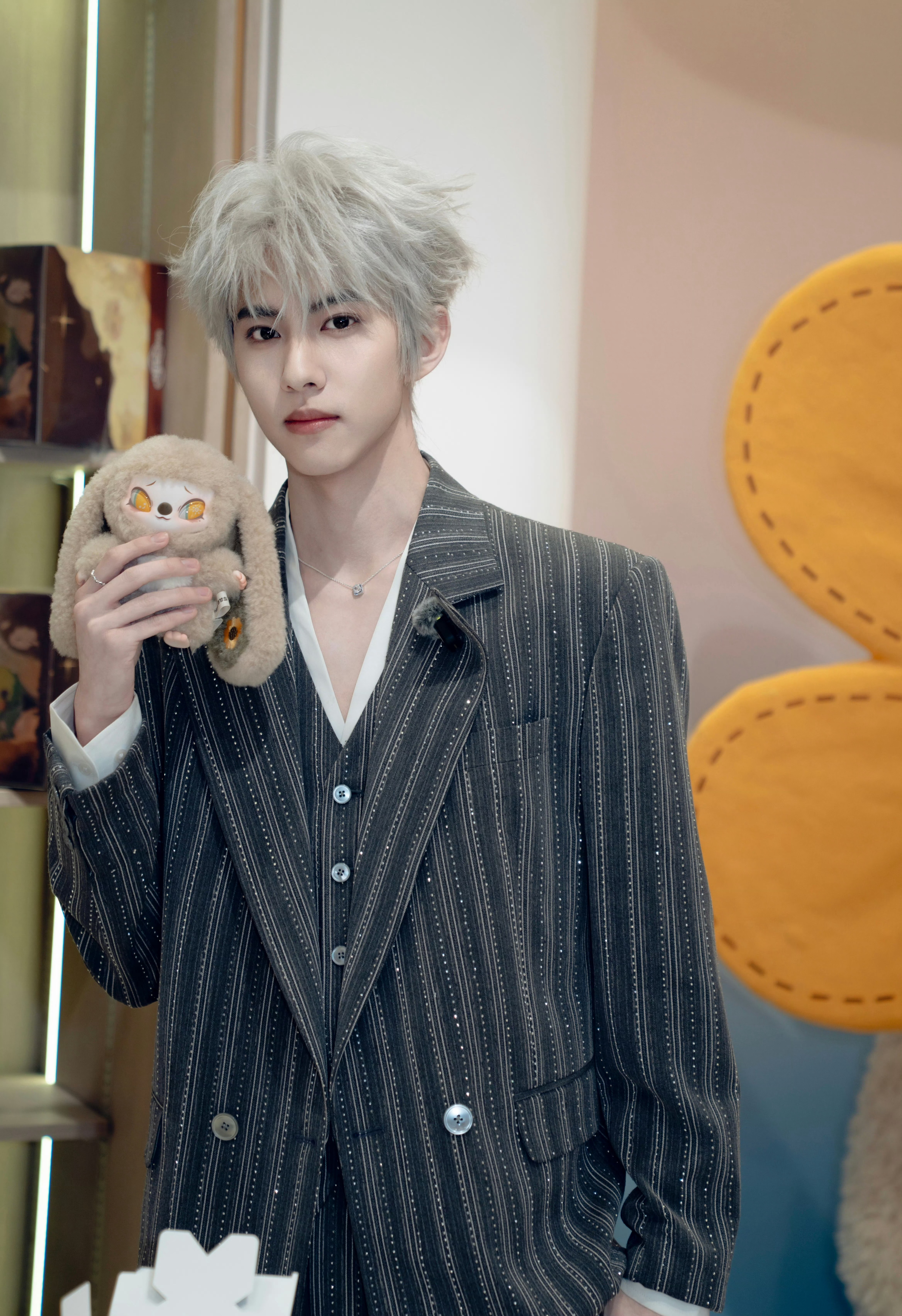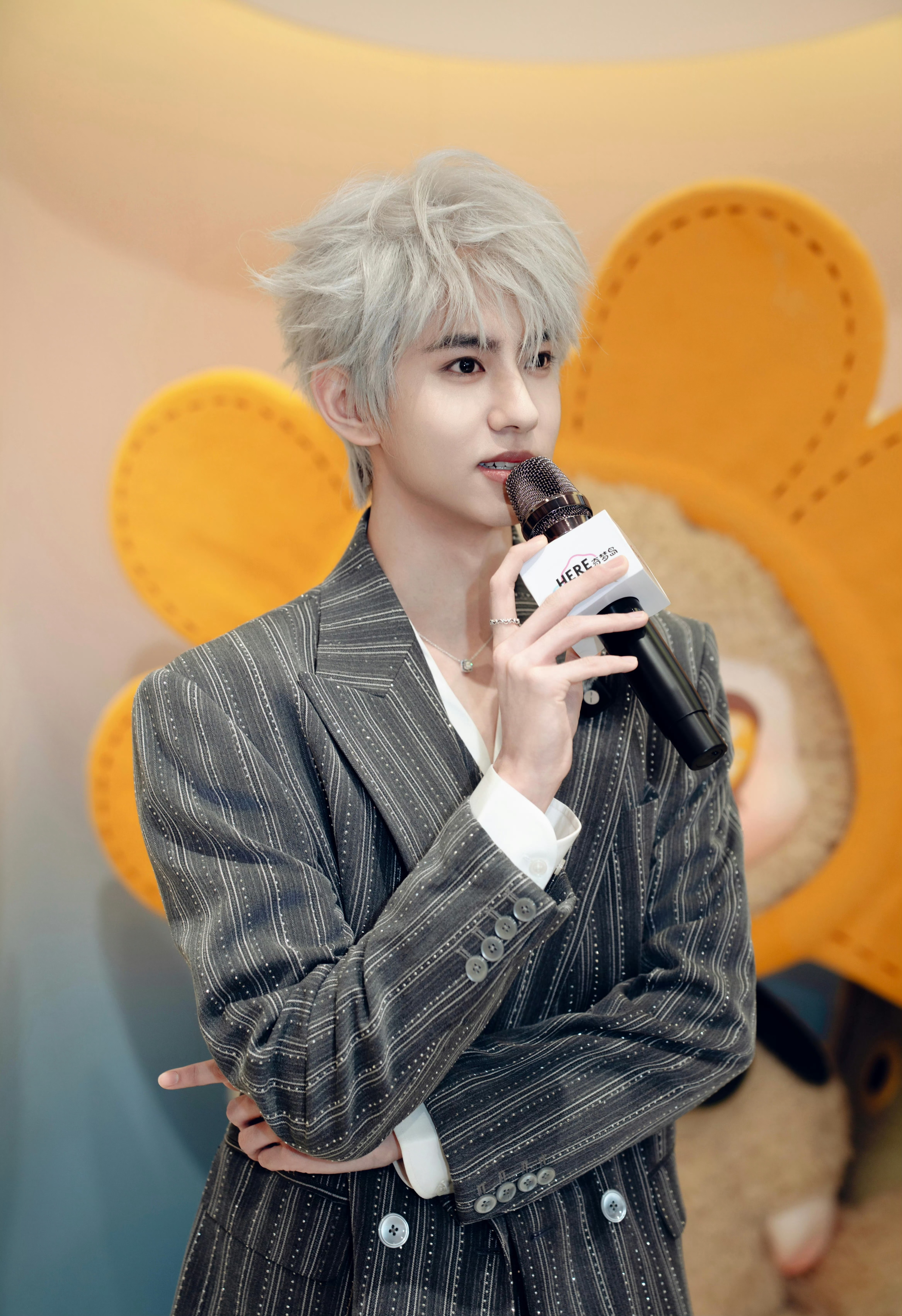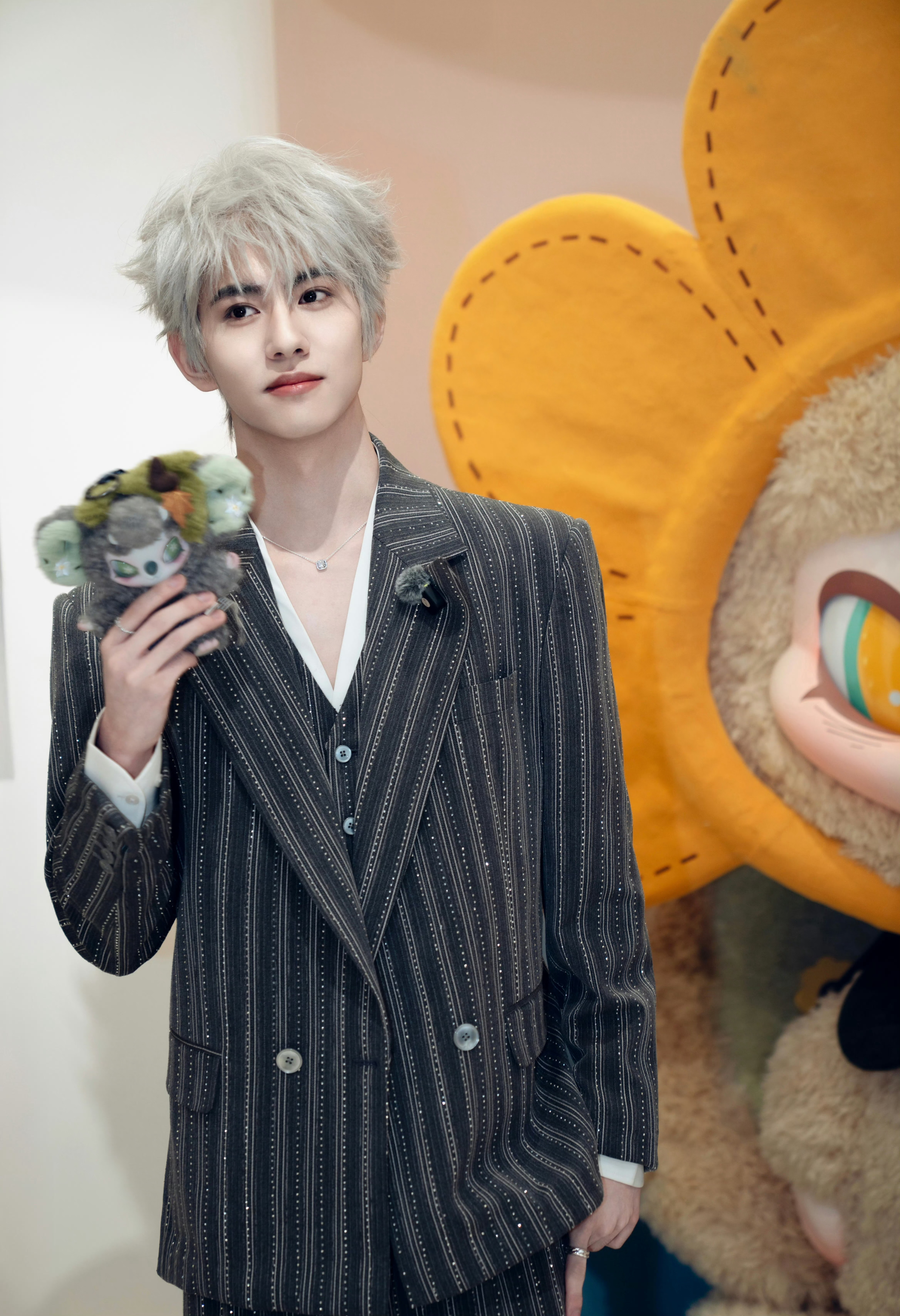 刘轩丞以品牌全球大使身份亮相深圳SIINONO线下活动,身着双排扣条纹烫钻西服套装,搭配Pandora珠宝点缀。一头灰白发色映衬着利落五官,冷峻中透出细腻光芒,矜贵而不失锋芒~✨