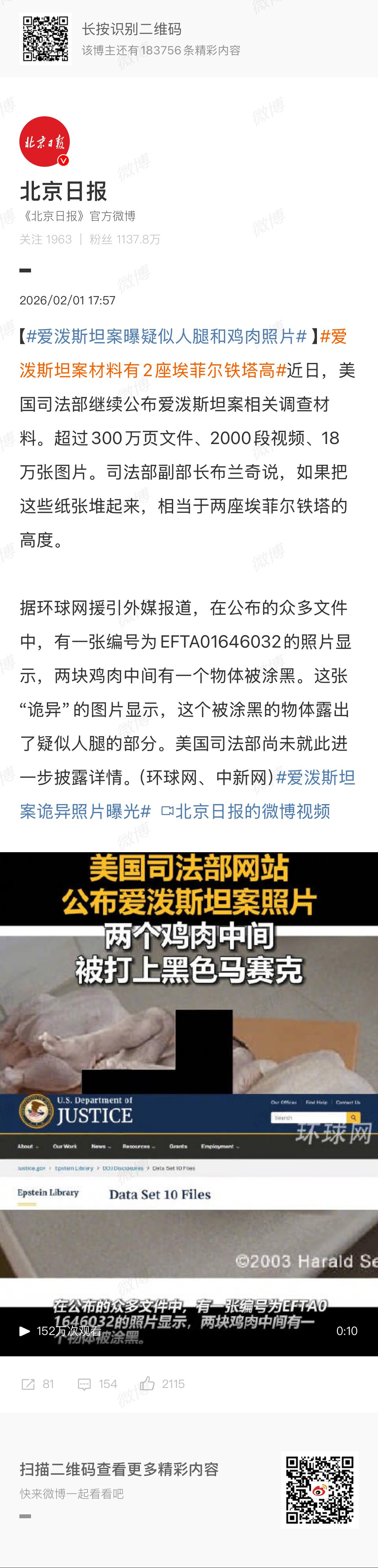 爱泼斯坦案曝疑似人腿和鸡肉照片 把这三张图放一起,就有了一种特别苏联笑话的幽默感……