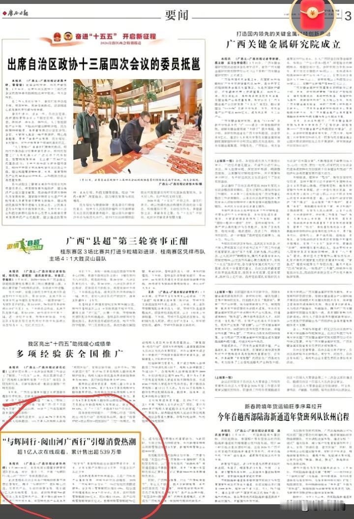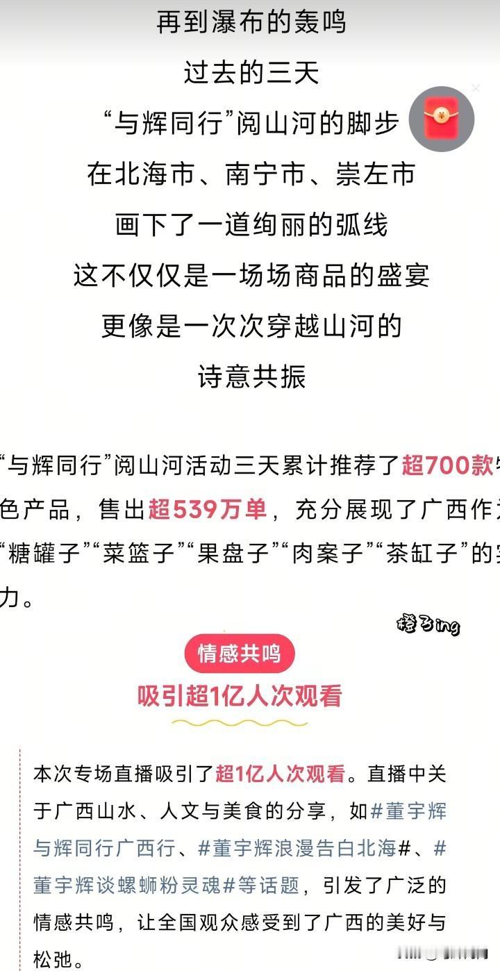 不用说话,只看董宇辉在广西这三天受欢迎程度,这三天的成绩单,就足够说明一切了。 《广西日报·要闻》有“与辉同行”的专题报道。 广西某商场投屏:欢迎董宇辉老师“10又”来广西。 看董宇辉战报的数字,就问你,心不心惊,肉不肉跳就完了。 还有两幅照片,越看越有滋味。