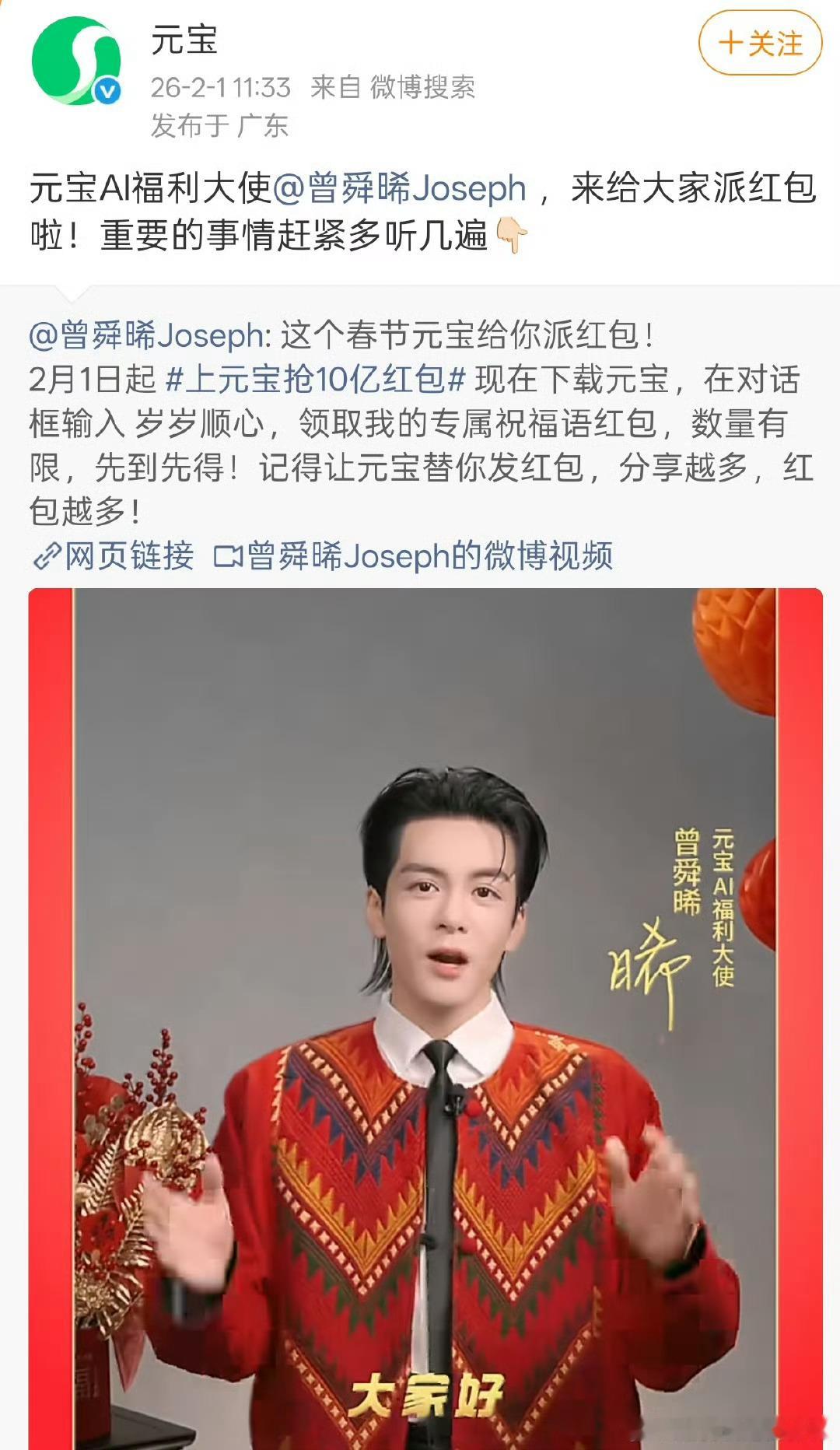 孟子义曾舜晞一起官宣元宝AI福利大使恭喜🎉🎉帅哥美女