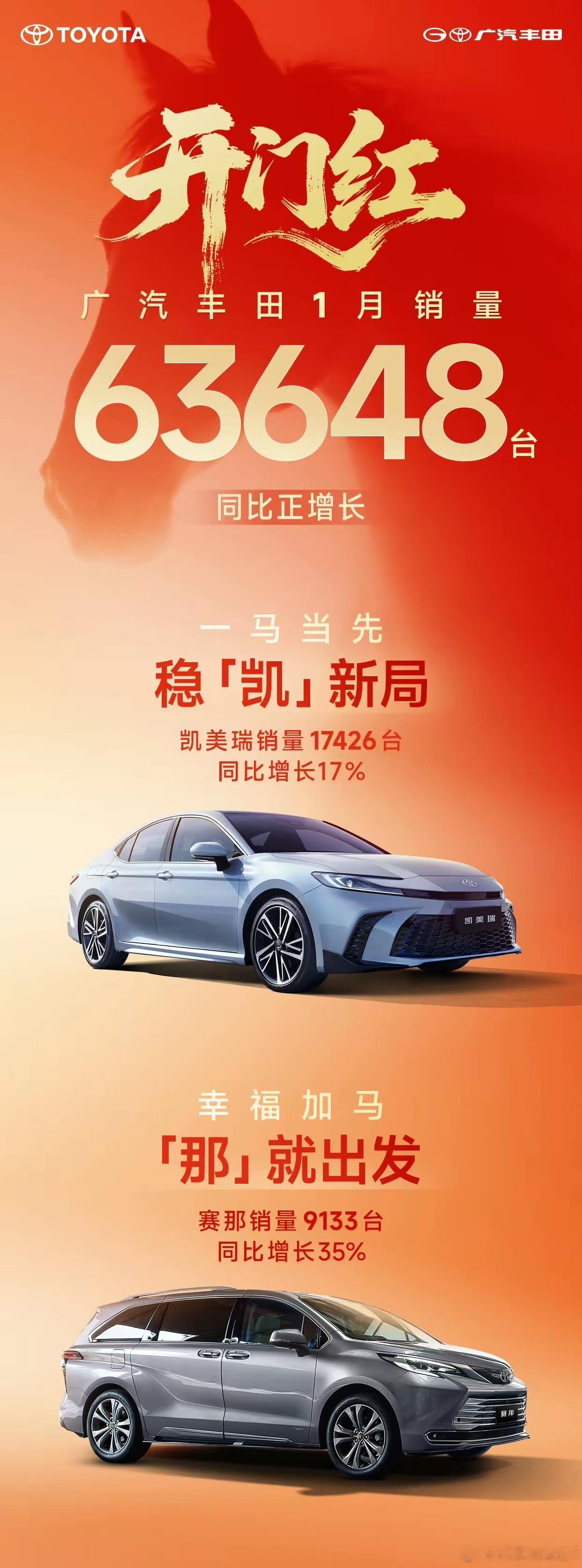 广汽丰田:销售63648辆,环比下跌7.51%,其中凯美瑞销量17426辆,同比增长17%,赛那销量9133辆,同比增长35%;