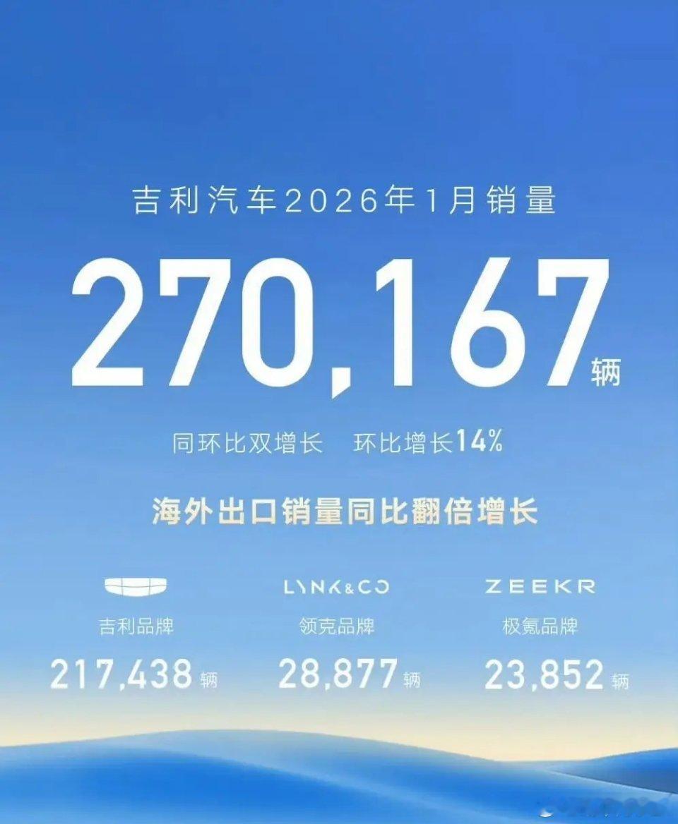 吉利:销售27.02万台,较去年同期增长约1%,其中出口总销量和极氪品牌总销量均较去年同期实现翻倍增长;