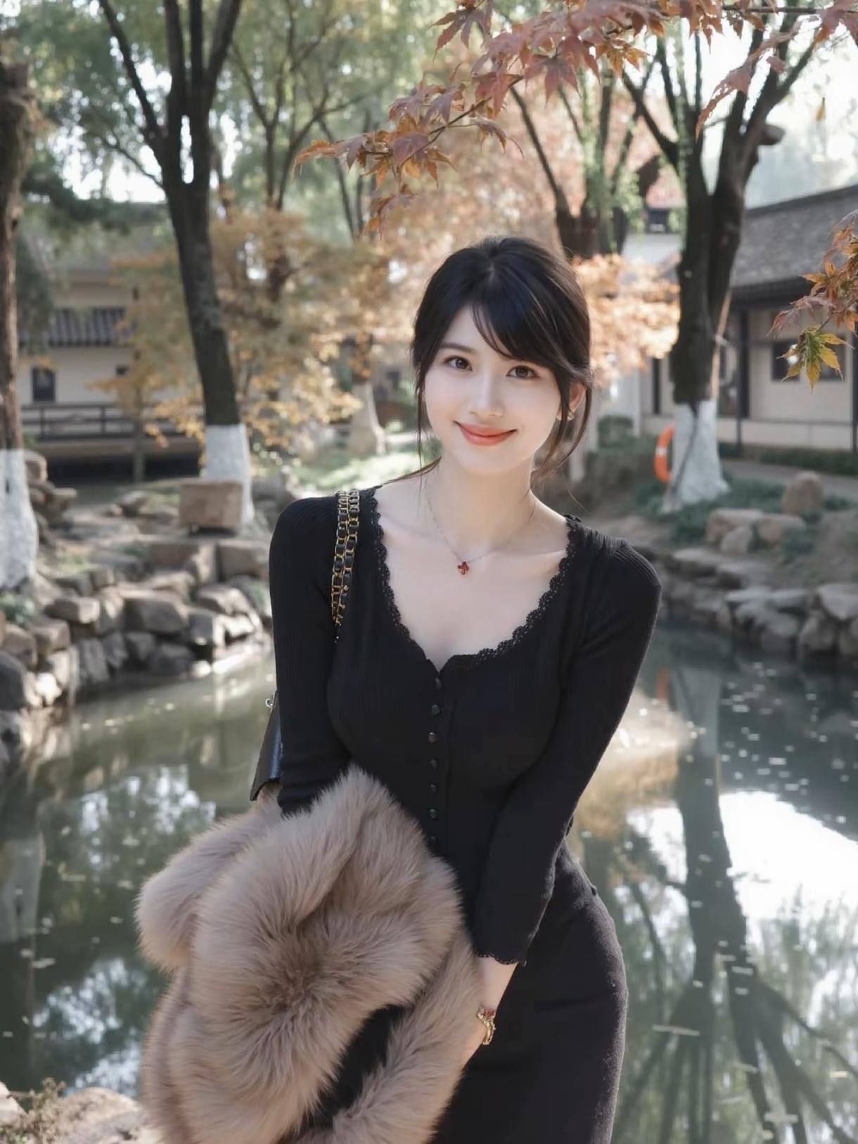 『半窗月痕·鹧鸪天·园隅闲步』 作者/朱珠 池面风轻皱碧纹,枫红沾鬓软香温。 黑裙曳影阶前立,裘披肩边笑靥春。 依石畔,倚栏身,古檐垂瓦覆苔痕。 偷闲半日耽清景,一袖晴光伴客身。 诚邀对句 上联一:池风皱水,枫红沾鬓留清兴 上联二:古檐覆瓦,一袖晴光伴客闲