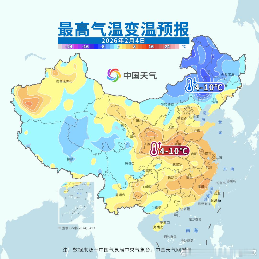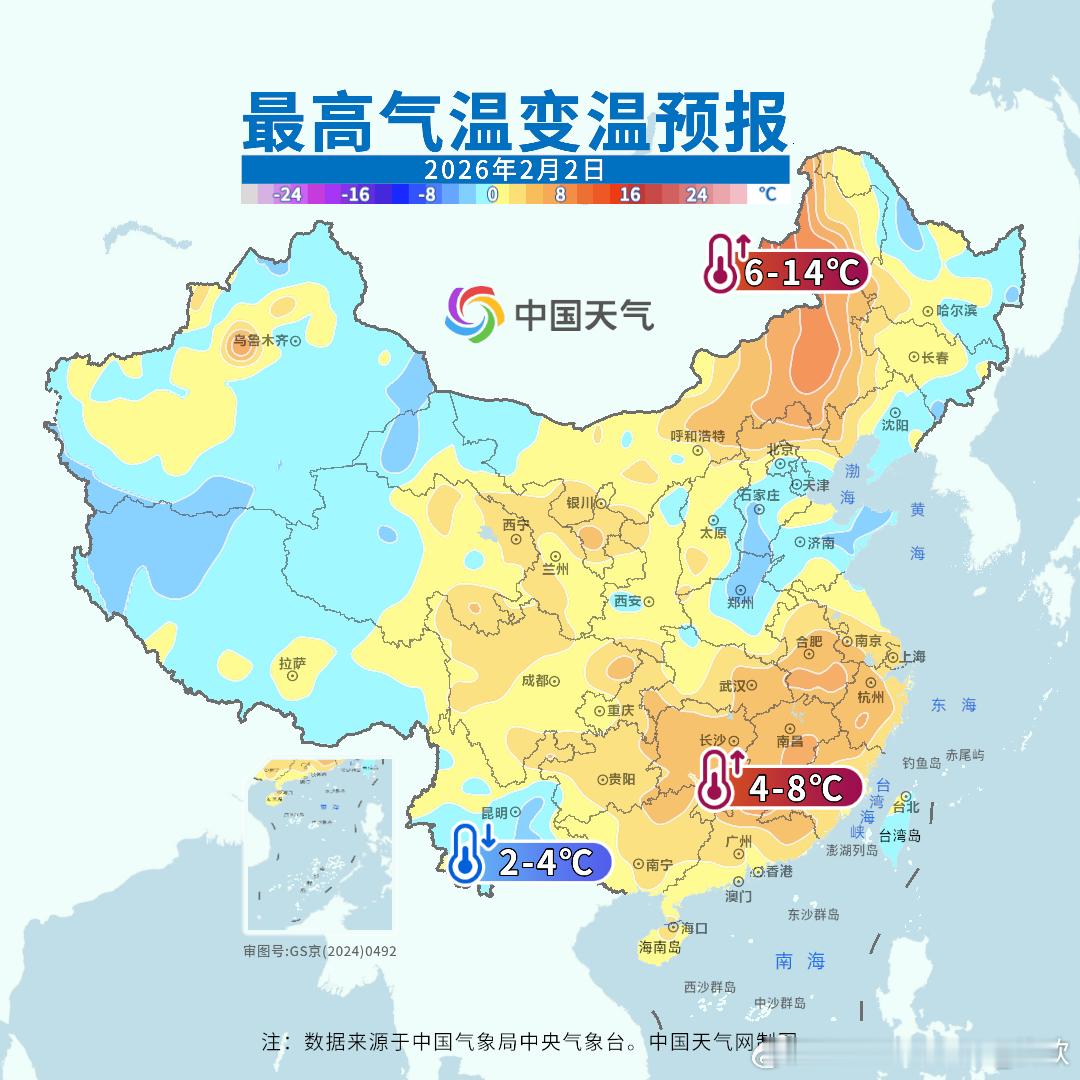 【气温冲高回落】未来2天,中东部大多升温,东北经过连续升温后,气温有望短暂转为偏高。长春在2月3日最高气温可能回到0℃以上,将是今年首次。但2月4日东北气温又会转为下降,长春2月6日最高气温可能降至零下17℃,3天降幅可达16℃。华北一带,2月4日继续升温,北京、天津可能是今年首次上10℃。