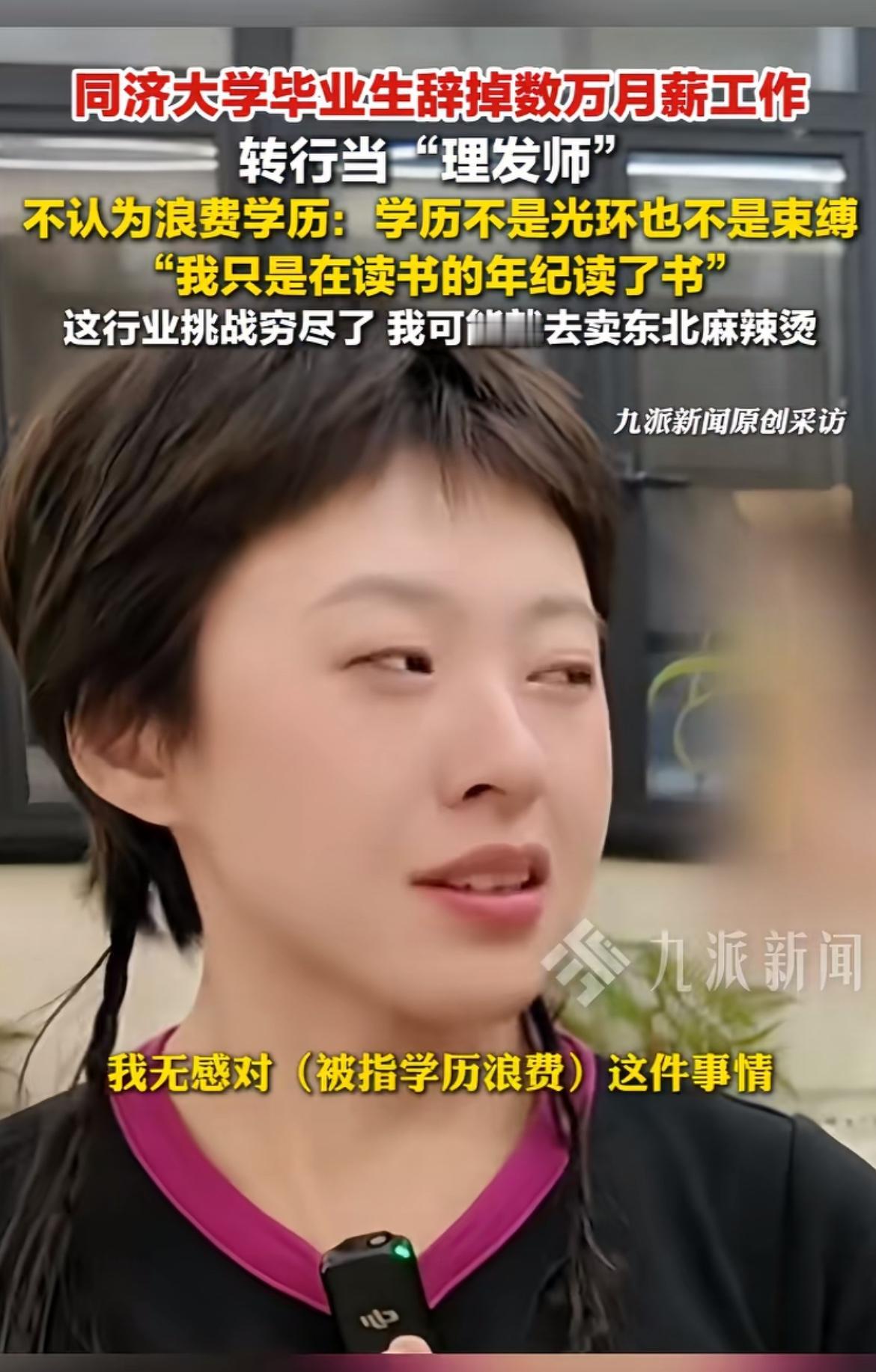 王欢的人生就像一部精彩反转剧。她是同济大学建筑环境专业高材生,28岁成房地产公司高薪管理岗白领。可29岁时,她却毅然辞职去当理发师。 原来,她从小就爱设计发型,没社交媒体时,每月都去理发店按自己审美指导造型。对她而言,剪发是能带来内心愉悦的艺术。辞职时她钱不多,还没系统培训,就利用周末自学。 开店后,她的理发店成网红打卡地,为女性提供尊重需求的服务。不过,女性理发师面临不少挑战,有性别偏见,但她没退缩,想改变行业现状,让更多女性找到归属感,这勇气真让人佩服!