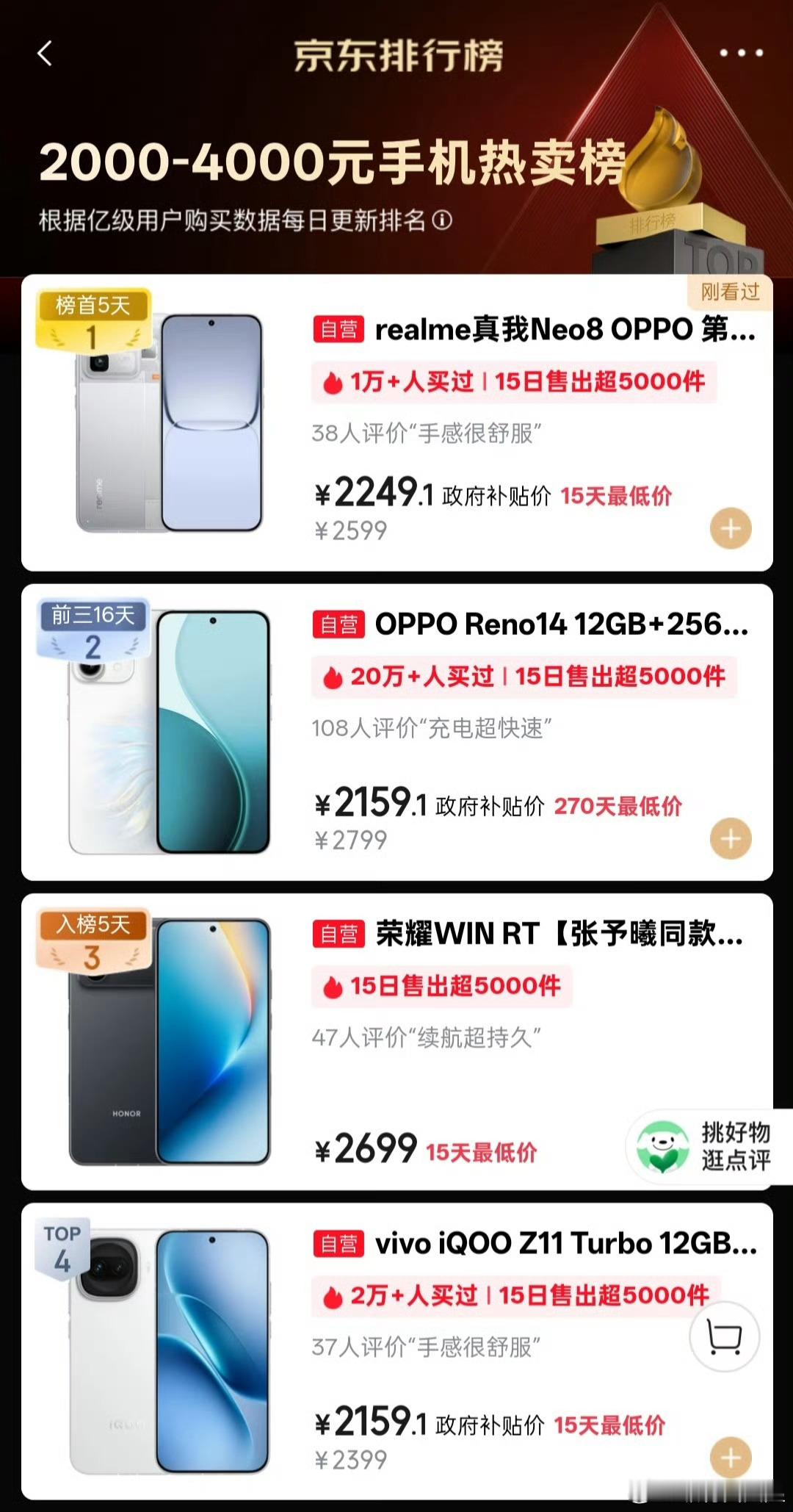 真我Neo8在京东2K-4K档手机热卖榜TOP1不意外,Reno14位列第二更
