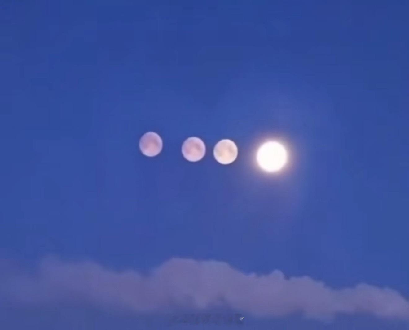 俄罗斯夜空同时出现4个月亮别人解释说:這種現象稱為「假月亮」。在嚴寒天氣下,由於