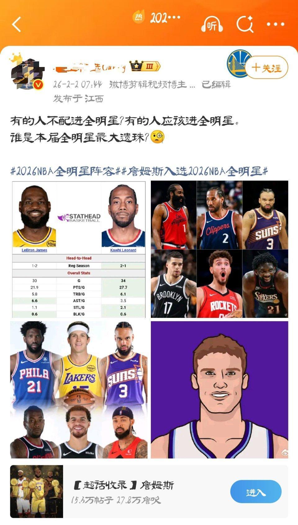 詹姆斯替补进个全明星,没想到库里球迷竟然心疼起死敌哈登和伦纳德来了????喂,2024年库里不就全明星替补了吗?