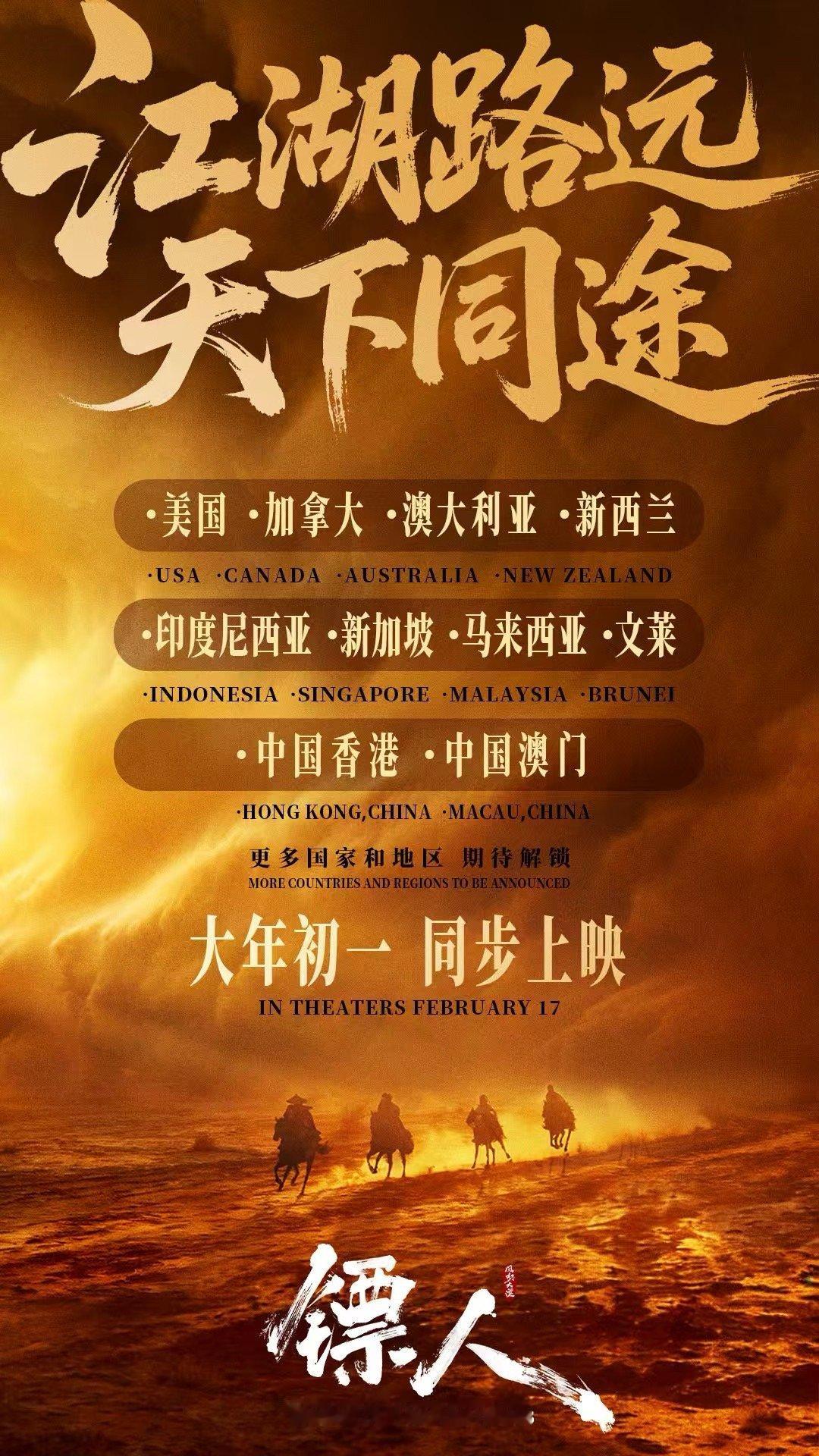 电影镖人港澳海外同步上映 硬核武侠出海太燃了!大年初一北美、澳新、东南亚等多地和国内同步看镖人,袁和平执导的中式江湖,把中国武侠的底气与风采送到全世界,这波必须狠狠骄傲!镖人用武侠打开文化出海