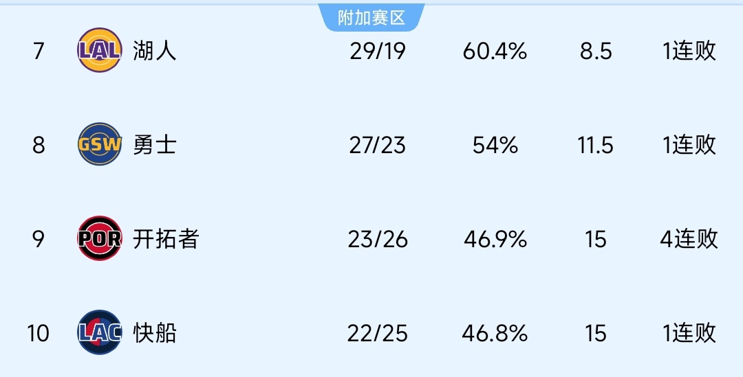 48场比赛打完!!!湖人29胜19负排名西部第六!!!场均得到:116.1分