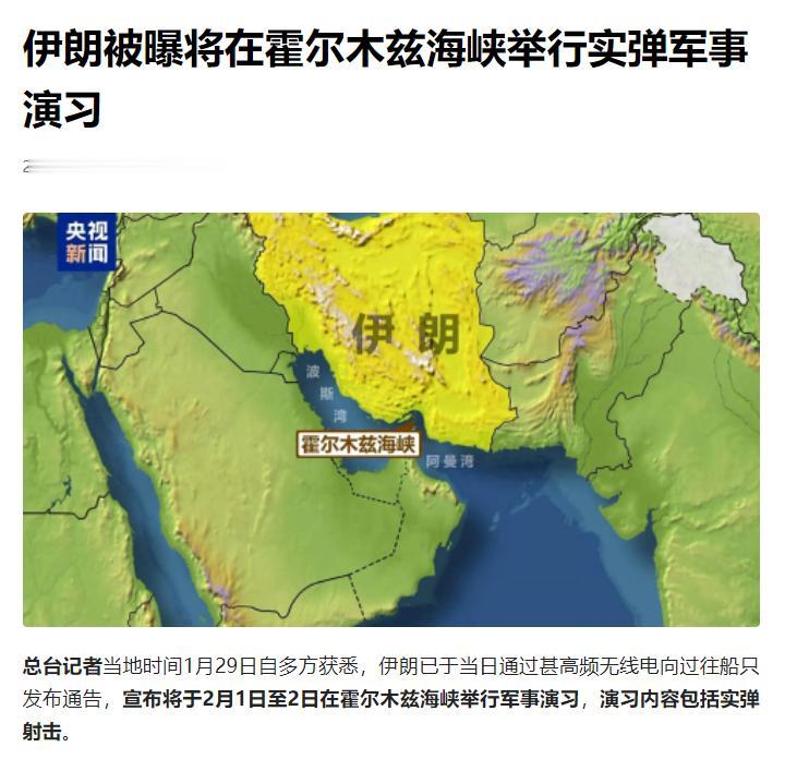 伊朗动手了。 消息通过无线电传遍霍尔木兹海峡,通知所有船只:2月1号开始,这里是军事演习区,有实弹射击。 全世界的油轮船长,手里的咖啡杯都得晃一下。不是夸张,是真的慌。这些常年跑霍尔木兹海峡的油轮船长们,心里比谁都清楚这消息意味着什么。这条海峡不是普通航道,是全球石油运输的命门。 先给大家捋个实锤信息,当地时间2月1号,伊朗一名官员突然出面否认了演习传闻。这名官员明确表态,伊朗伊斯兰革命卫队压根没有在霍尔木兹海峡搞实弹演习的计划,之前流传的通知就是错误信息。 可别觉得否认了就没事了。美军中央司令部在1月30号就发了声明,放话不会容忍伊朗在霍尔木兹海峡的“不安全行为”,还特意提醒伊朗要专业演习,避免风险。 美军的反应不是空穴来风。1月29号,多方消息都在传,伊朗伊斯兰革命卫队海军会在2月1号到2号在海峡内搞实弹演习。消息一出,整个航运圈直接炸锅。 为啥大家这么紧张?霍尔木兹海峡的分量摆在这里。这条海峡北邻伊朗,南接阿联酋和阿曼,全长才161公里,最窄的地方只有33公里。 每天有2000万桶原油从这条海峡运出,占了全球海运原油总量的三成,全球石油消费量的五分之一。更关键的是,全球20%的液化天然气贸易,还有卡塔尔60%的天然气出口,都得走这条道。 对亚洲国家来说,这条海峡更是生命线。84%的原油都会运往亚洲,中国、印度、日本、韩国都是主要买家。单说中国,每天从这里接收480万桶原油,占了海峡总流量的24%,咱们国家35%到40%的原油进口都靠这条通道。 油轮船长们的顾虑很实际。实弹演习期间,航道会大幅压缩。超级油轮本身吨位大、转向慢,稍有不慎就可能误入射击区域,或者被流弹击中。 之前就有过类似案例,地缘局势紧张时,霍尔木兹海峡的船舶通行效率直接腰斩,每艘船的等待时间从几小时飙升到几十个小时。运费也跟着暴涨,最后这些成本都会转嫁到油价上,全球消费者买单。 大家可能会问,伊朗为啥要传演习的消息?这背后全是美伊博弈的影子。当地时间1月30号,美国财政部刚发布新一轮对伊制裁,盯上了伊朗内政部长和多名伊斯兰革命卫队高级官员。 欧盟更狠,1月29号直接把伊朗伊斯兰革命卫队列为“恐怖组织”,还冻结了15名伊朗官员和6个实体的资产,限制他们签证。伊朗外交部和武装部队总参谋部当即发表声明,强烈谴责欧盟的决定。 外部制裁步步紧逼,伊朗内部的压力也不小。2026年初,伊朗的通胀率已经突破42%,里亚尔贬值幅度超过50%,食品价格涨了70%。普通工人一个月工资折合下来才70美元,一公斤肉就要8到9美元,不少家庭只能靠面包配酸奶过日子。 这种情况下,伊朗释放演习信号,更像是一种战略威慑。伊朗军方之前就明确说过,一旦国家安全受威胁,就会封锁霍尔木兹海峡。 封锁海峡对伊朗来说是把双刃剑。伊朗90%以上的石油出口也得走这条通道,封锁了别人,自己的外汇来源也会被切断。但对全球来说,后果更严重。分析普遍认为,要是海峡长期封锁,国际油价能直接涨到120美元一桶以上,全球通胀会再上一个台阶。 美国这边也没闲着。特朗普1月29号在华盛顿表态,美伊之间有过对话,计划继续谈,还说希望不动用武力。但话锋一转,他又强调有很多威力强大的舰船正驶向伊朗。 美军的部署已经到位。“亚伯拉罕·林肯”号航母打击群已经驶向波斯湾,上面搭载着F-35C战机。B-52战略轰炸机也部署在了卡塔尔的空军基地,距离伊朗边境只有200公里。 虽然双方都在放狠话,但全面战争的概率很低。美国的战略重心不在中东,国内70%的选民反对对伊动武,沙特等海湾国家也明确拒绝卷入冲突,不开放领空给美国用于打击伊朗。 伊朗这边也在控制风险。否认演习传闻,就是不想把矛盾彻底激化。毕竟当前最紧迫的,还是缓解国内的经济压力和社会矛盾。 现在的局势,更像是美伊之间的心理战。伊朗通过释放演习信号,回应外部制裁;美国通过军事部署,施压伊朗妥协。 而夹在中间的,就是全球的油轮船长和能源消费者。哪怕只是传闻,霍尔木兹海峡的任何风吹草动,都会牵动全球能源市场的神经。 后续大家可以重点关注两点。一是美伊的对话进展,有没有实质性的缓和信号。二是霍尔木兹海峡的通行情况,一旦有船舶滞留或者异常动态,油价大概率会波动。 总的来说,这场博弈还没结束。全球能源安全的命门,依然捏在霍尔木兹海峡这条狭窄的水道上。
