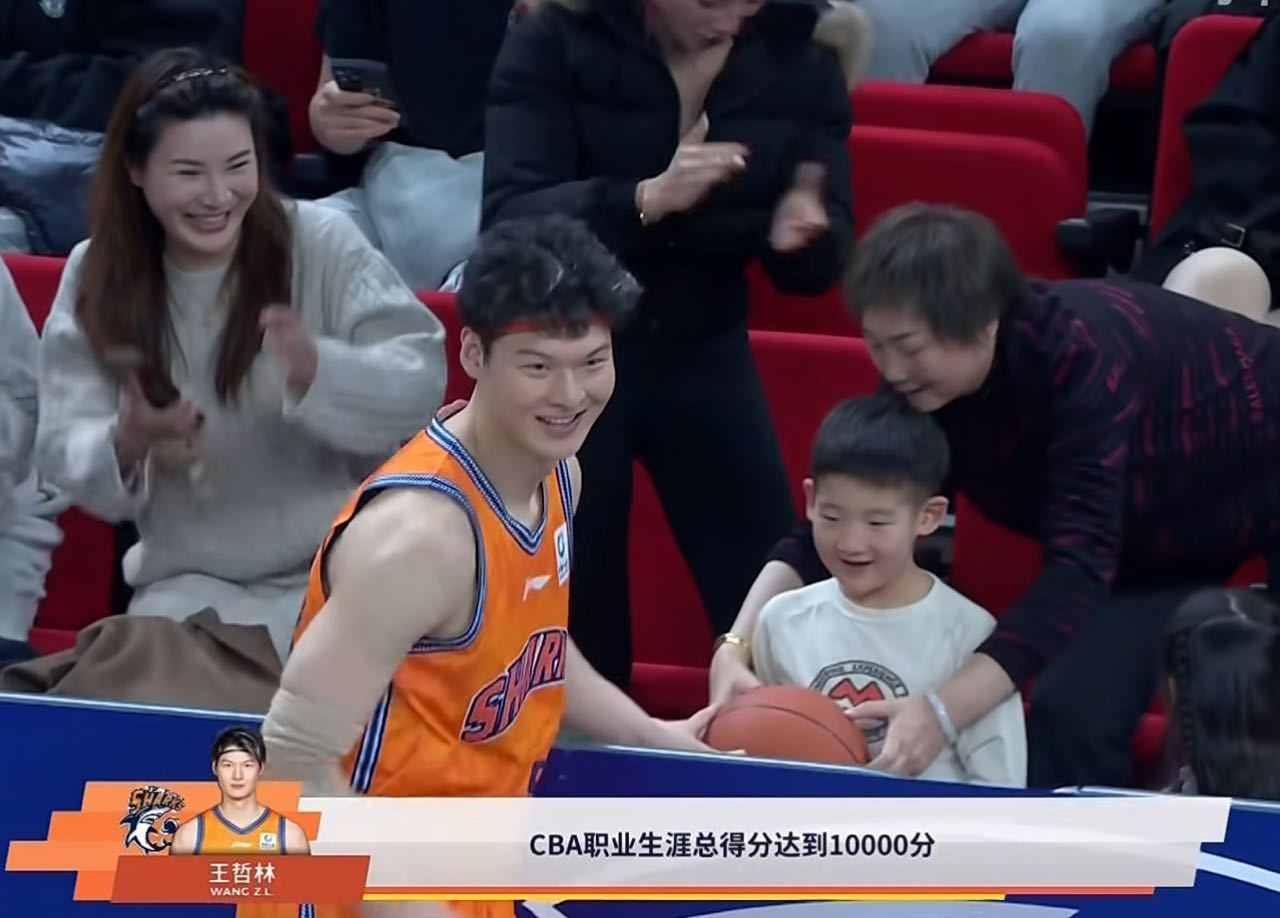 王哲林:很早之前就想过,如果拿到10000分,要把这个球给他。恰好那场比赛他在现场,就把球给他了。