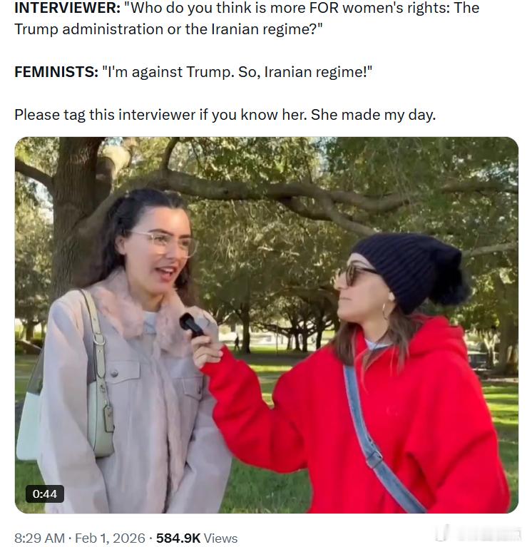 采访者:“你觉得谁更支持女性权利:特朗普政府还是伊朗政权?”