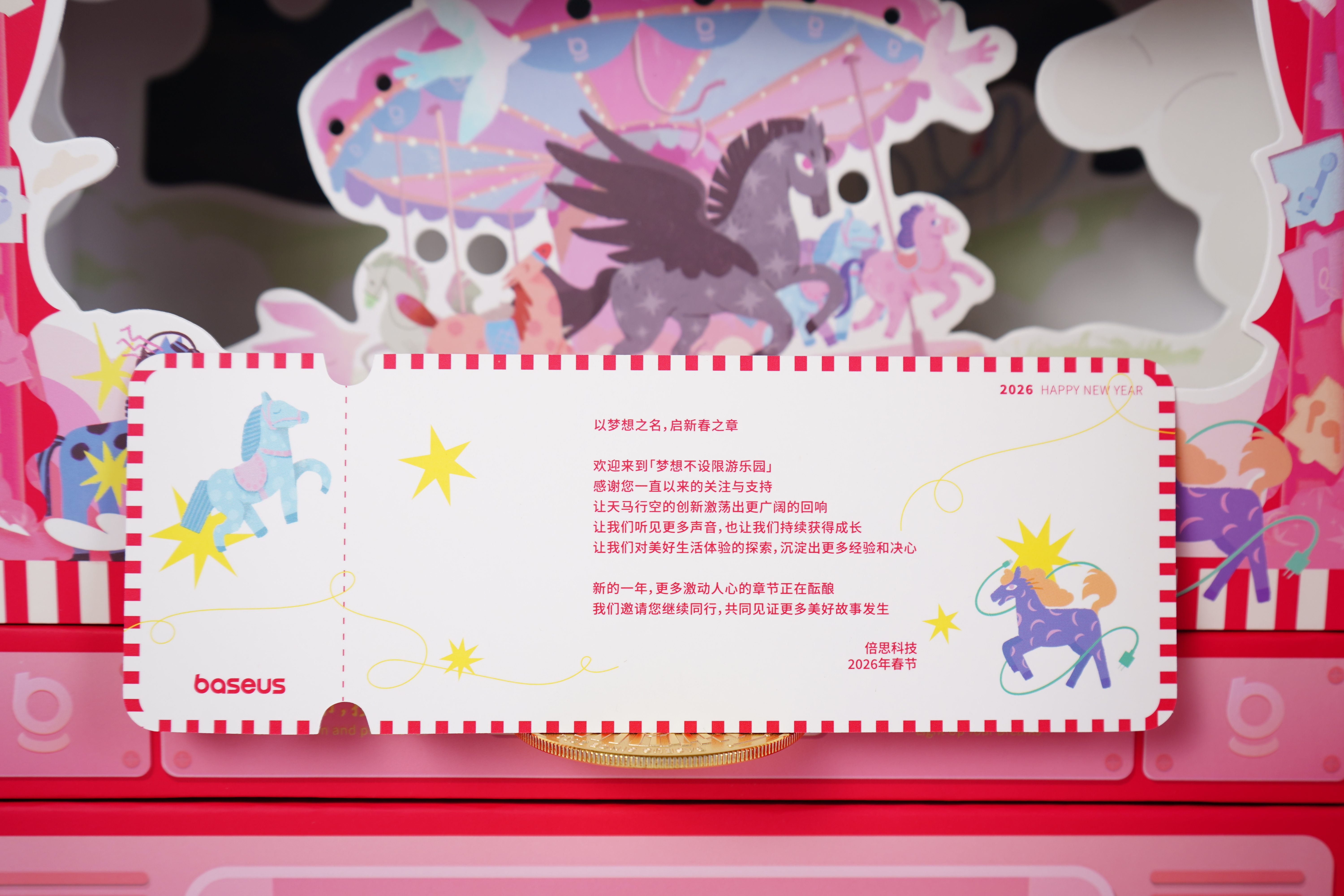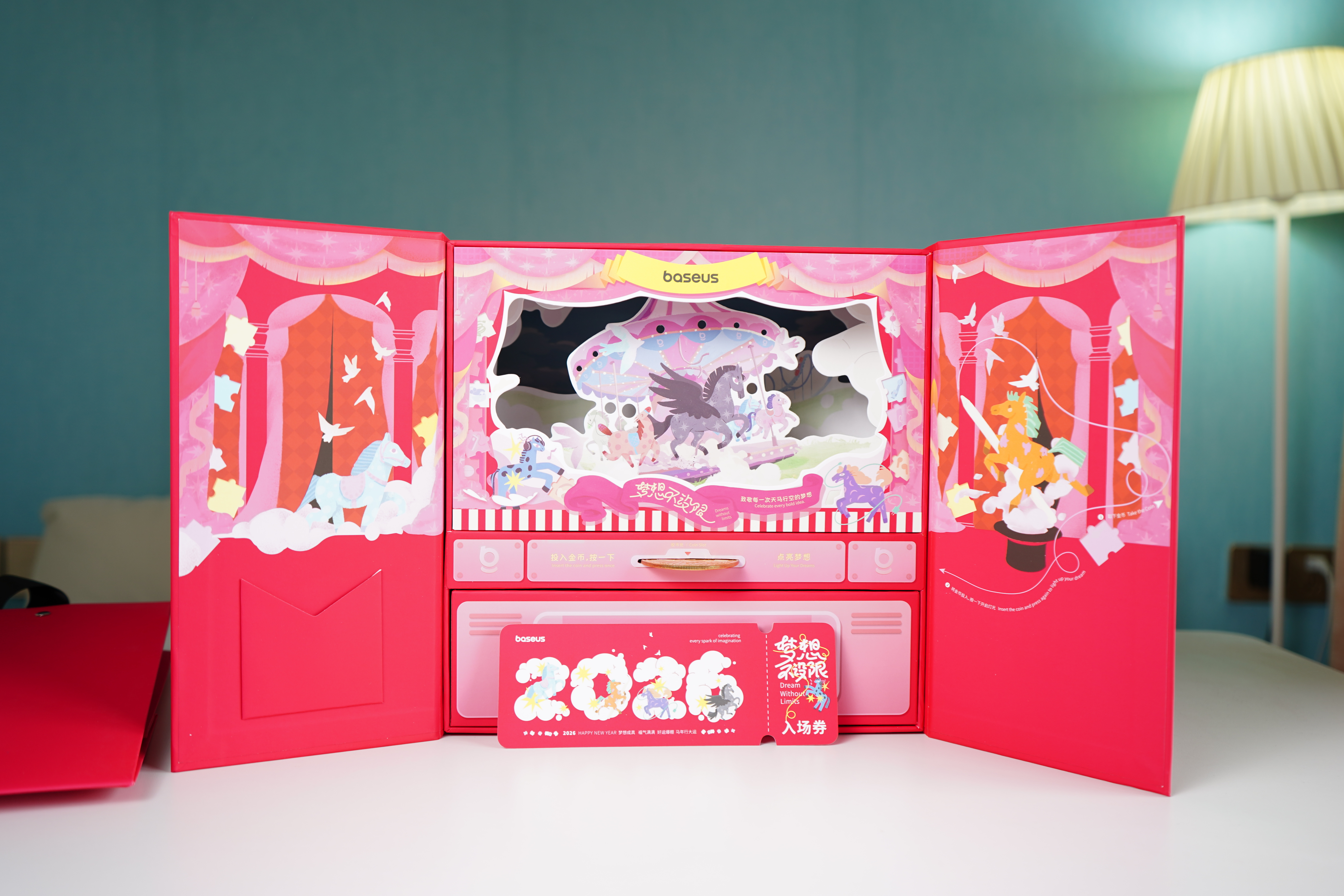 收到了倍思寄来的新春礼盒,太有氛围感了,梦想不设限……礼盒的锁扣竟然是个可取下来的金币,可以用来开启盒子里面的梦想游乐园,梦幻童真。