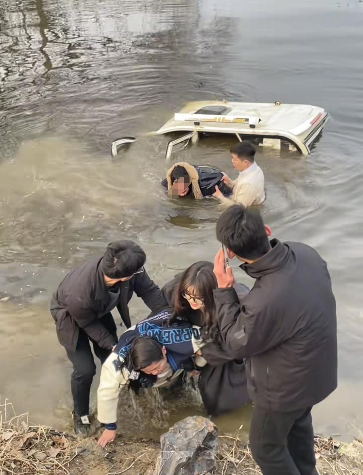 2月1日,江苏徐州。姊妹俩骑老头乐不慎连人带车翻入水中,关键时刻路过的两夫妻冒着严寒,丈夫下水将车中的两姊妹救出。为见义勇为的夫妻俩点赞!