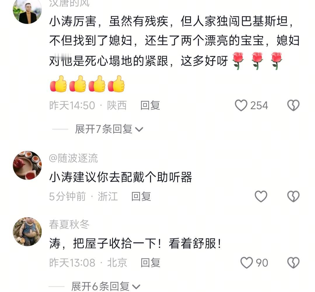 看到巴铁媳妇返乡第2天不见了,我忍了 看到山东小涛带巴铁媳妇见他父母,我也忍了 可看到小涛的两个儿子,没两天就学会了喊爷爷奶奶,我实在忍不了了 刷到山东小涛的视频时,我晕!标题写着“巴铁媳妇返乡第二天不见了”,换谁不得慌?本来以为是真出啥事儿了,吓得我赶紧往下翻,结果点开才发现,纯属“反向秀恩爱”,这波操作也太给力了吧!说实话,现在的vlog为了吸睛真是啥招都想得出,但小涛这波,我服! 小涛带着媳妇和俩儿子回山东德州老家,父母那叫一个开心,腿不酸腰不疼了,天天抱着大孙子稀罕得不行。六岁大娃更牛,两天就学会喊“爷爷奶奶”,必须的,隔代亲就是这么神奇!然后重点来了,小涛姐姐直接把项链给弟媳戴上,老家还备好了全新的新房,沙发、床、电视一应俱全,对比他们在巴基斯坦租房的日子,简直是从茅草屋搬进了小洋房。 本来以为这就是全部,结果没想到,弟媳第二天一早就把新房打扫得干干净净。我这人就爱观察这些细节,说实话,能这么珍惜眼前的幸福,真的太难得。她学中文的样子更逗,跟着姐姐家的中学生一笔一划写,第一次写“家”字,把宝盖头写成了三角形,小外甥笑到拍桌子,她自己也挠头,还念叨“别人说的,慢慢来就是修行”,哈哈,这心态也太好了吧! 刷评论区的时候,看到一条留言特别戳我:“我表哥也是农村大龄青年,相亲相了十年都没成,看小涛俩儿子俩媳妇,眼睛都看直了”。不是吧?这也太真实了!还有人说“等她中文学好,高低得和小涛一起做抖音”,说实话,我也这么觉得,这么勤快又上进的媳妇,不火都难。 不过也有网友抬杠:“文化差异大,迟早有矛盾”。胡扯!我身边就有跨国家庭,只要互相包容,慢慢磨合,日子照样过得红火。其实她学中文、主动做家务的样子,已经说明一切了。别人说的“缘分天注定”,大概就是这样,七年坚守换来现在的幸福,这不是锦鲤是什么? 总之,我想说的是,刷到这种温暖的视频就挪不开眼。其实幸福很简单,无非就是家人在侧、三餐四季,跨不跨国真的不重要。不是吗?只要真心换真心,再远的距离、再大的差异,都能慢慢化解。希望小涛一家一直这么幸福,也希望所有跨国家庭都能顺顺利利! 巴基斯坦媳妇儿