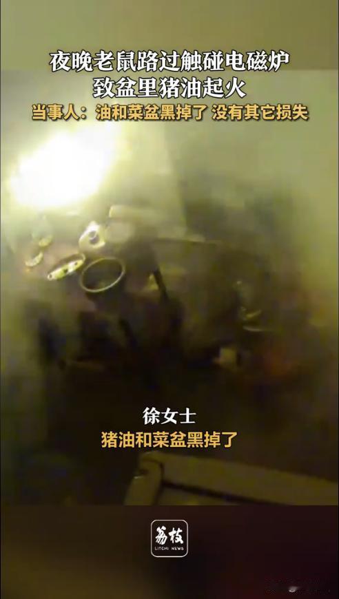 “悲剧还是发生了!”近日,一女子在家炼好猪油后就直接放在电磁炉上,想着第二天再用,没想到半夜时,一只老鼠爬上了灶台,意外触碰了电磁炉开关,没过一会儿,放在炉上的猪油盆起火,整个厨房都冒起了浓烟。网友:这老鼠差点成了纵火犯! 很多家庭习惯把盛有油脂的容器放在灶台附近,图个取用方便,但这种做法暗藏隐患。电磁炉若未切断电源,一旦被误触启动,高温就可能引燃周边的油脂、食材等易燃物,引发火灾。 据媒体2月1日报道,徐女士当天做完饭后,把装着猪油的菜盆放在了电磁炉上,想着第二天炒菜用,却忘了拔掉电磁炉的电源。到了深夜,一只老鼠溜进厨房觅食,路过电磁炉时碰到了开关,电磁炉瞬间启动,高温很快将盆里的猪油加热至起火点。 火焰从油盆里窜起,油烟很快弥漫了厨房。幸运的是,火势仅局限在油盆和菜盆,没有蔓延到其他地方,等徐女士闻到焦味赶到时,火焰已经自行熄灭,只留下被熏黑的油盆和菜盆。 事后查看监控,徐女士才发现是老鼠“闯的祸”。她心有余悸地表示,只是油和菜盆被烧黑了,没有其他损失,算是不幸中的万幸。 因此,大家在厨房使用后,记得及时清理灶台周边的易燃物品,电器用完务必断电,避免因小疏忽引发火灾。 信息来源:《夜晚老鼠路过触碰电磁炉致盆里猪油起火当事人:油和菜盆黑掉了没有其它损失》荔枝新闻
