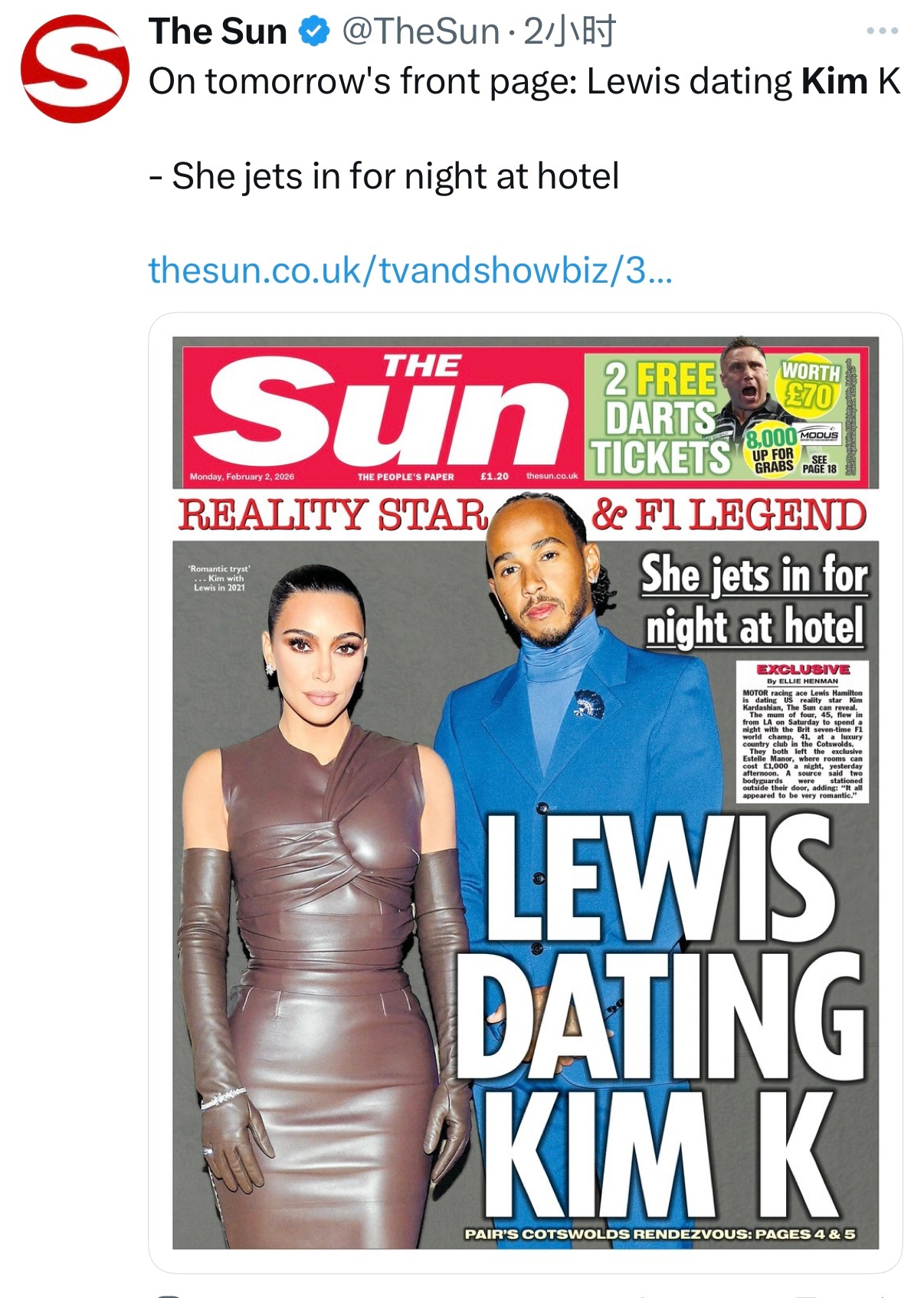 太阳报:汉密尔顿约会金-卡戴珊???f1