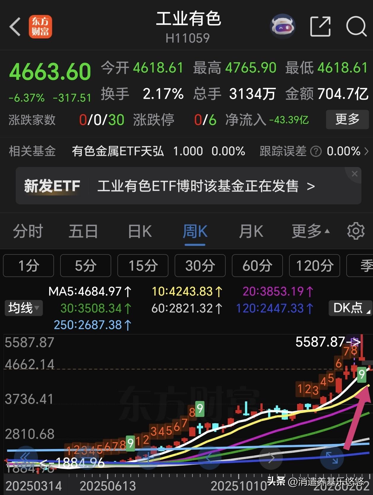 铜色黄色白色铝色锡色等等带颜色的板块,注意啦小黄在4600美元止跌,基本符合预期,也就是30日线支撑 附近,目前到了,不必恐慌,情绪发泄完就差不多了。至于铜色板块(如下图一所示),目前已经跌破了20日线支撑, 短线收不回来,估计要去下方30日线支撑位,大约有1.3%下跌空间,稳健的可以先出来部分,激进的持仓观望一下,或者适当低吸。