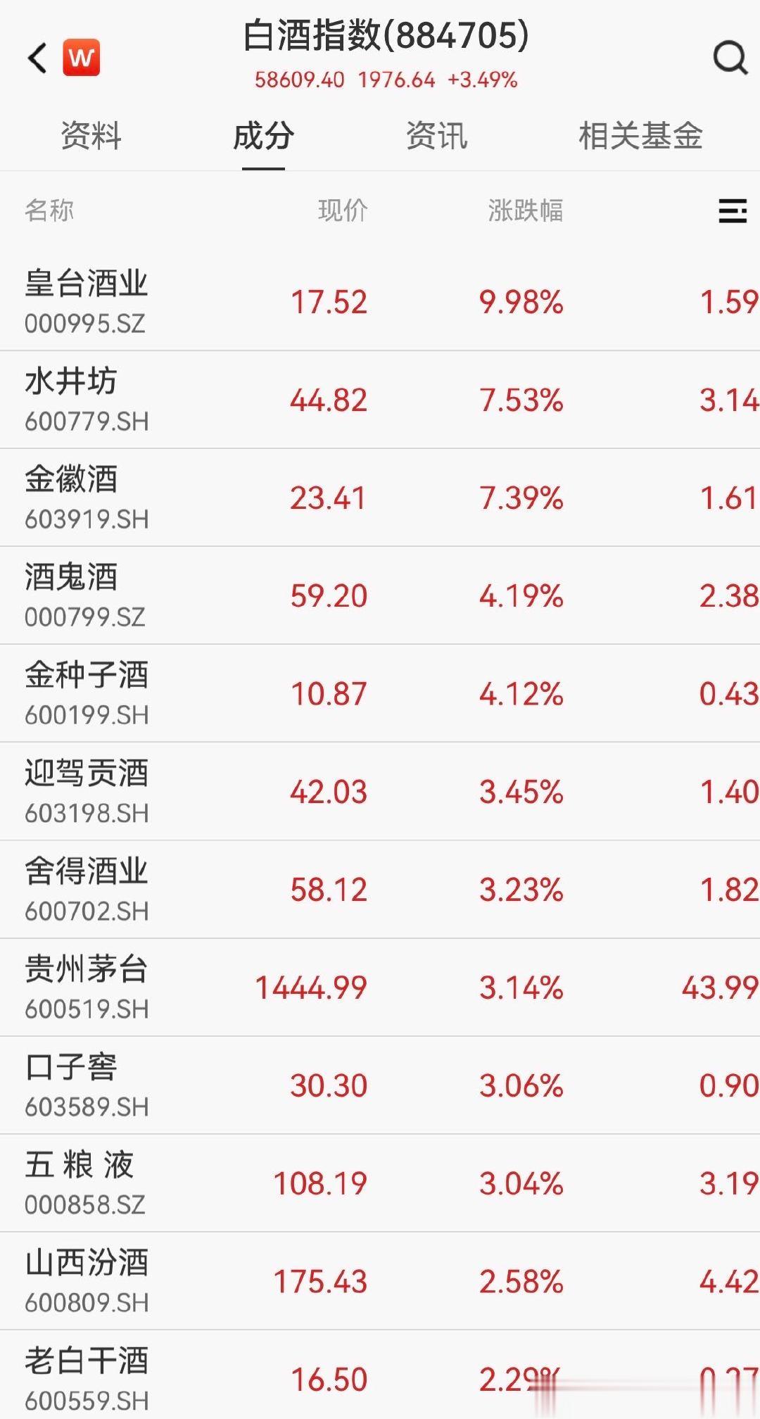 2月2日,白酒板块延续回暖态势,迎来集体大涨。截至当日10时31分,白酒指数(884705)涨幅超3%,成分股全线飘红,其中皇台酒业盘中涨停,水井坊、金徽酒涨幅超7%,酒鬼酒、金种子酒、贵州茅台等涨幅超3%,洋河股份、泸州老窖、今世缘等核心个股同步跟涨,市场做多情绪升温。