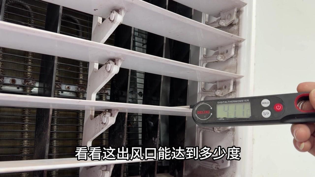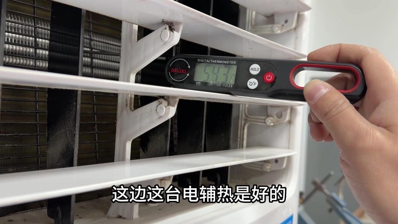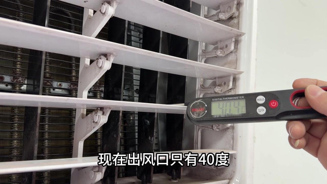 冬季制热,电辅热有多重要?最近发现家里空调制热差,50℃的出风口根本不暖和,师傅说问题在电辅热。 1️⃣对比测试:旁边正常用的空调,电辅热开着温度能到50多度,而我家只有40℃,明显差了十几度,难怪冬天冻人。 2️⃣内部结构:拆开后发现空调内部有蒸发器和电辅热两个部分,电辅热只在制热时启动,制冷完全用不上。 3️⃣更换效果:换完新电辅热后再试,制热30℃,出风口直接飙到57.5℃,后续还会升,感觉能到60℃左右,暖和多了。
