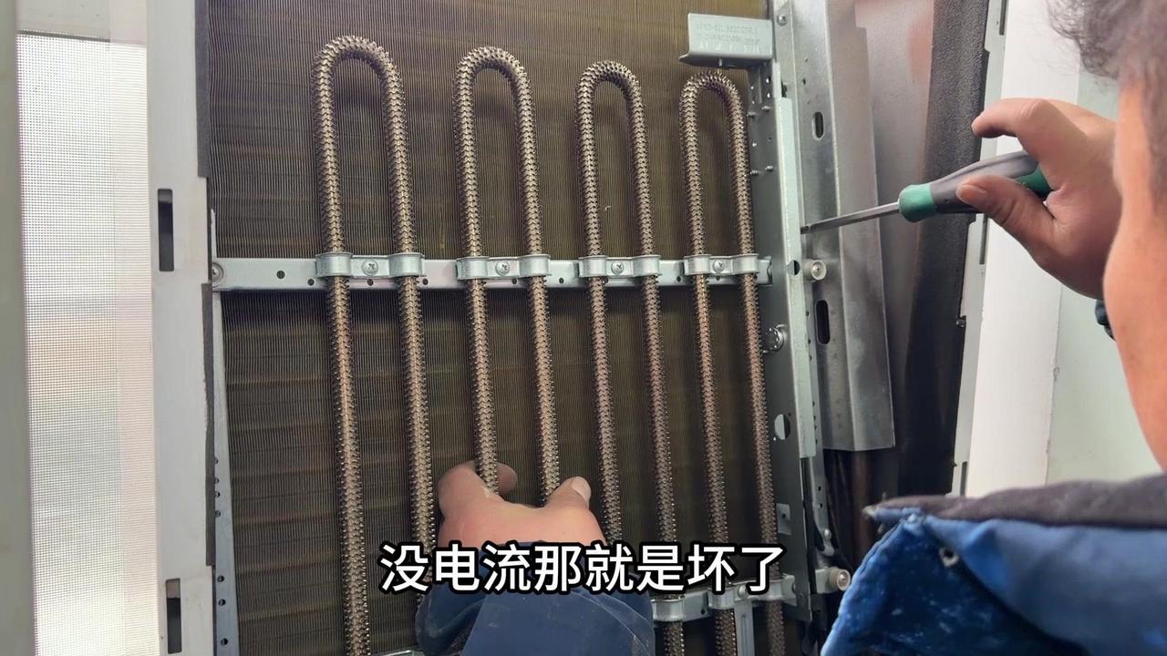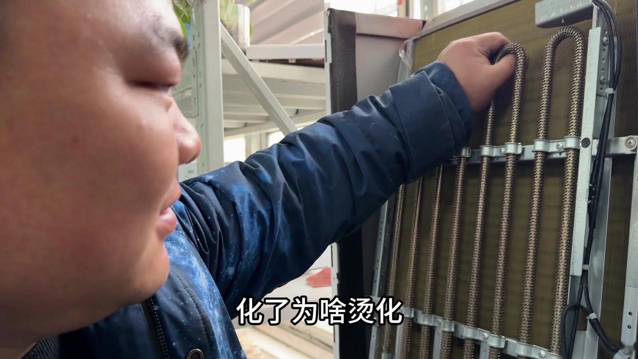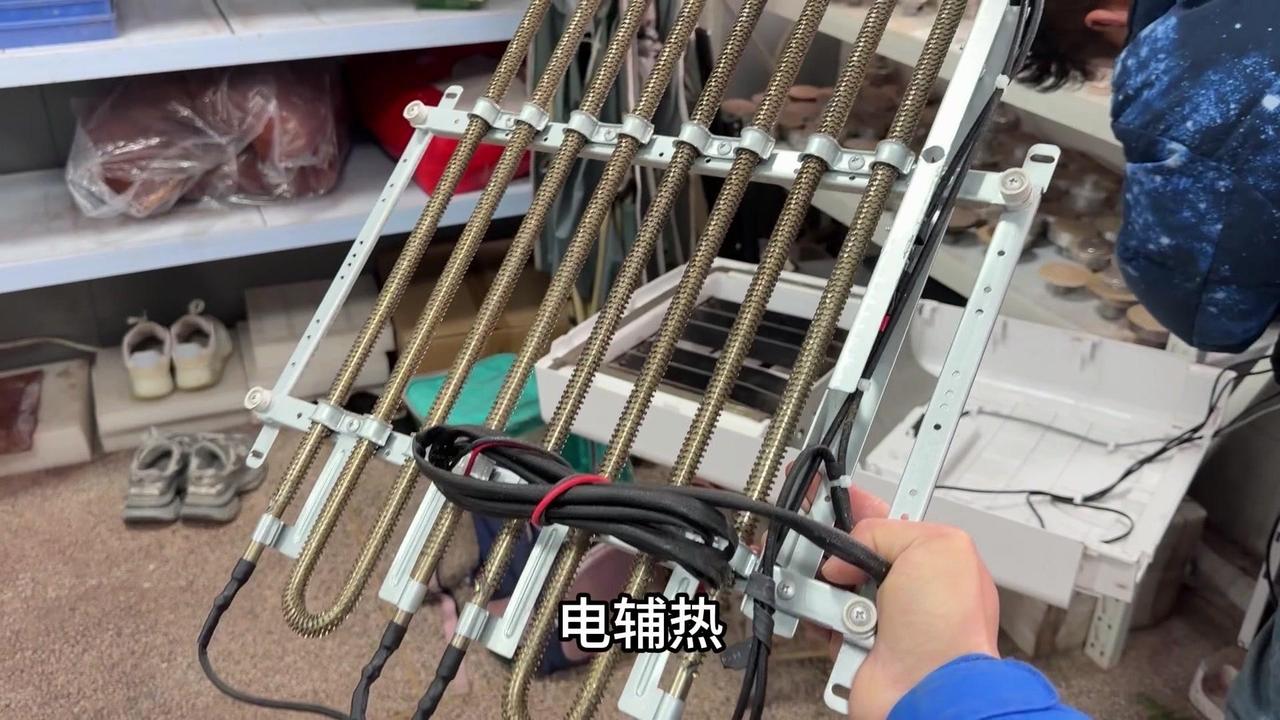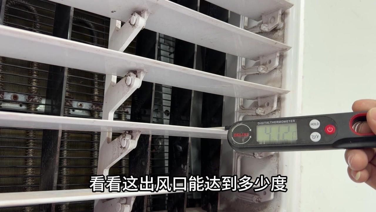冬季制热,电辅热有多重要?最近发现家里空调制热差,50℃的出风口根本不暖和,师傅说问题在电辅热。 1️⃣对比测试:旁边正常用的空调,电辅热开着温度能到50多度,而我家只有40℃,明显差了十几度,难怪冬天冻人。 2️⃣内部结构:拆开后发现空调内部有蒸发器和电辅热两个部分,电辅热只在制热时启动,制冷完全用不上。 3️⃣更换效果:换完新电辅热后再试,制热30℃,出风口直接飙到57.5℃,后续还会升,感觉能到60℃左右,暖和多了。