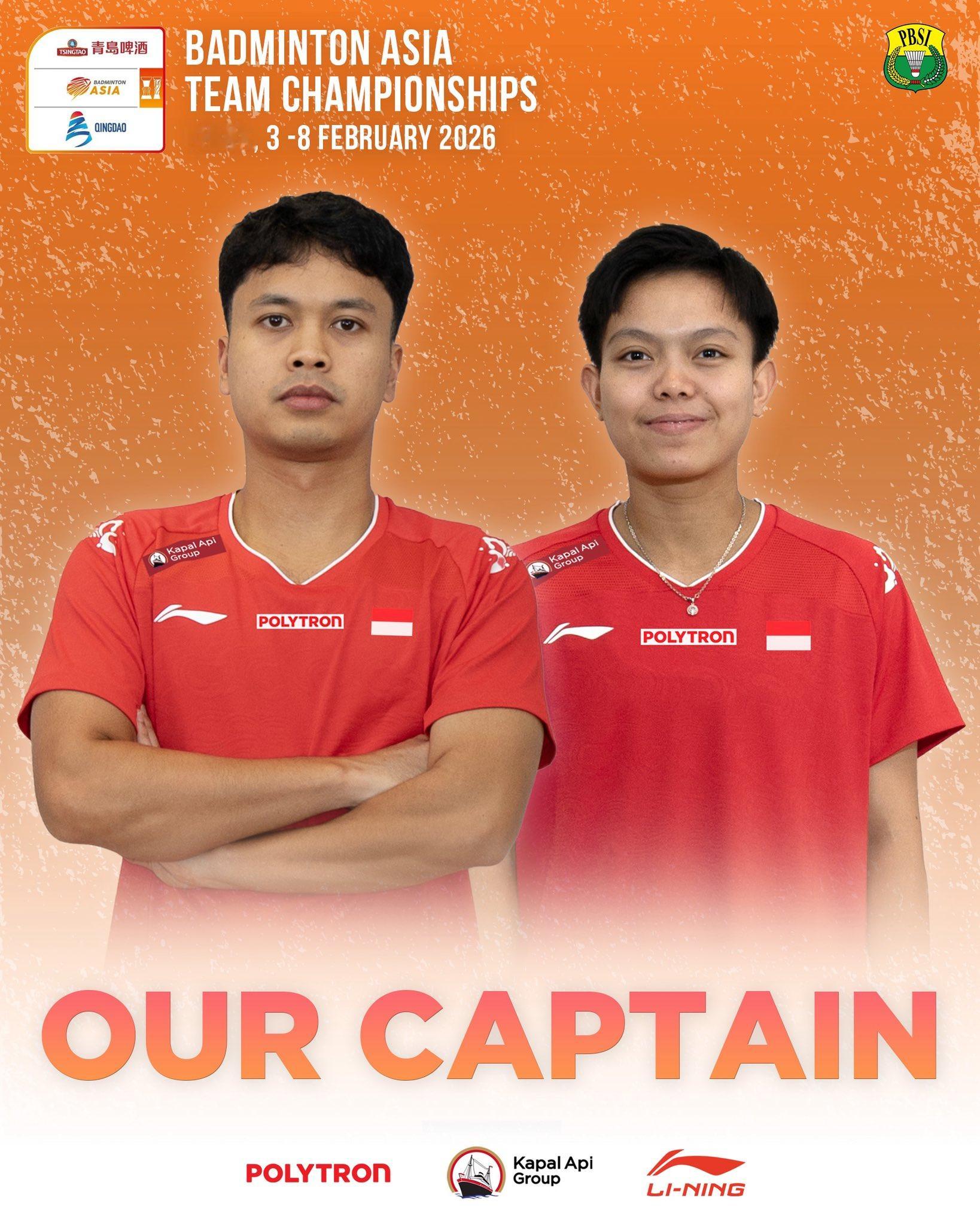 印尼男队队长:金廷印尼女队队长:拉马丹蒂2026亚洲羽毛球团体锦标赛