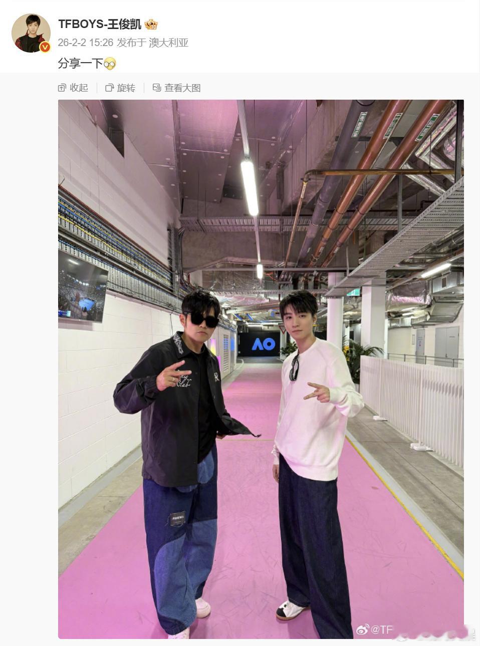【王俊凯分享跟周杰伦合照】2日,发了与偶像周杰伦的合照:分享一下
