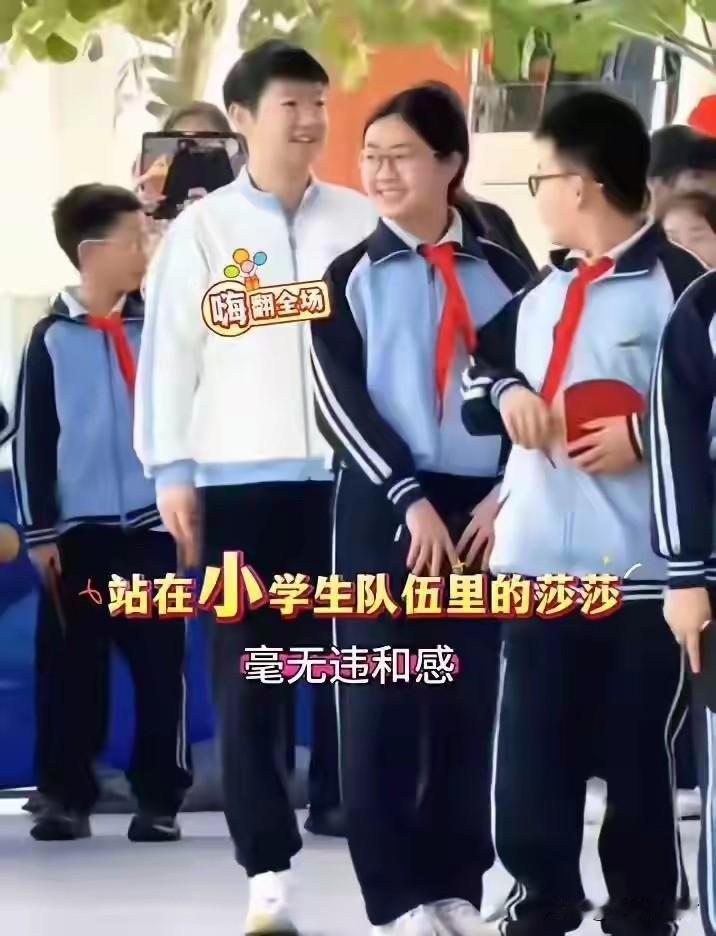 来到海口参加亚洲杯的国乒小伙伴们到学校跟小学生们进行交流,孙颖莎站在小学生中间似乎没啥违和感,就是个子稍高一点,要是戴条红领巾就更像了[耶]