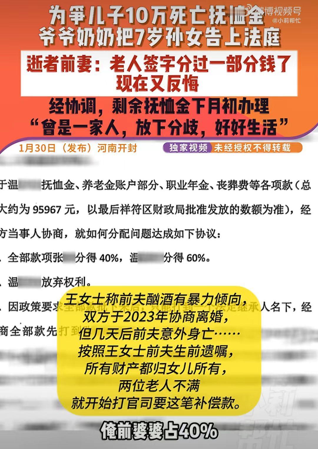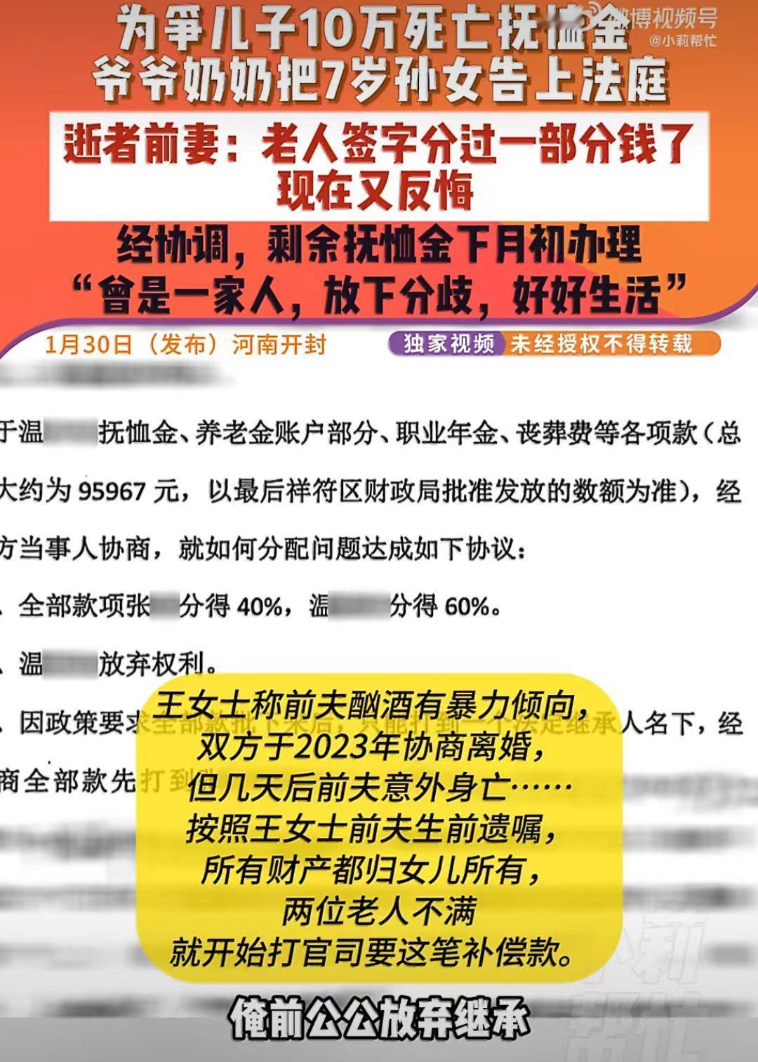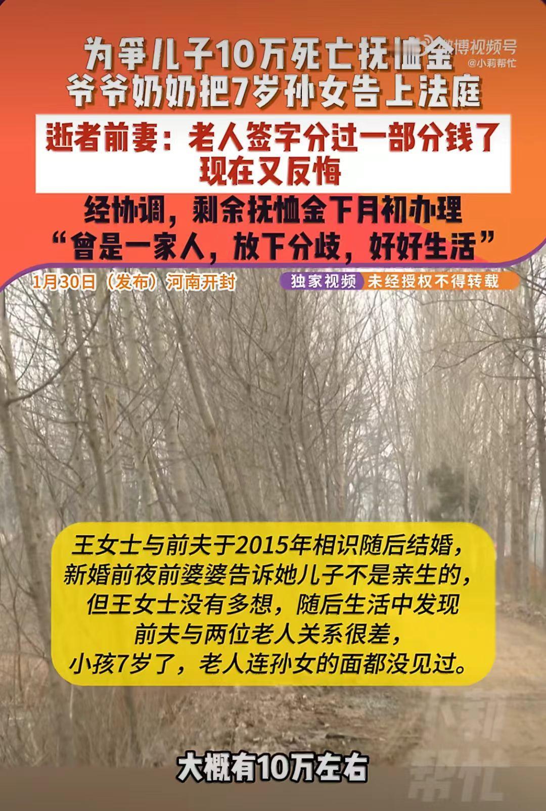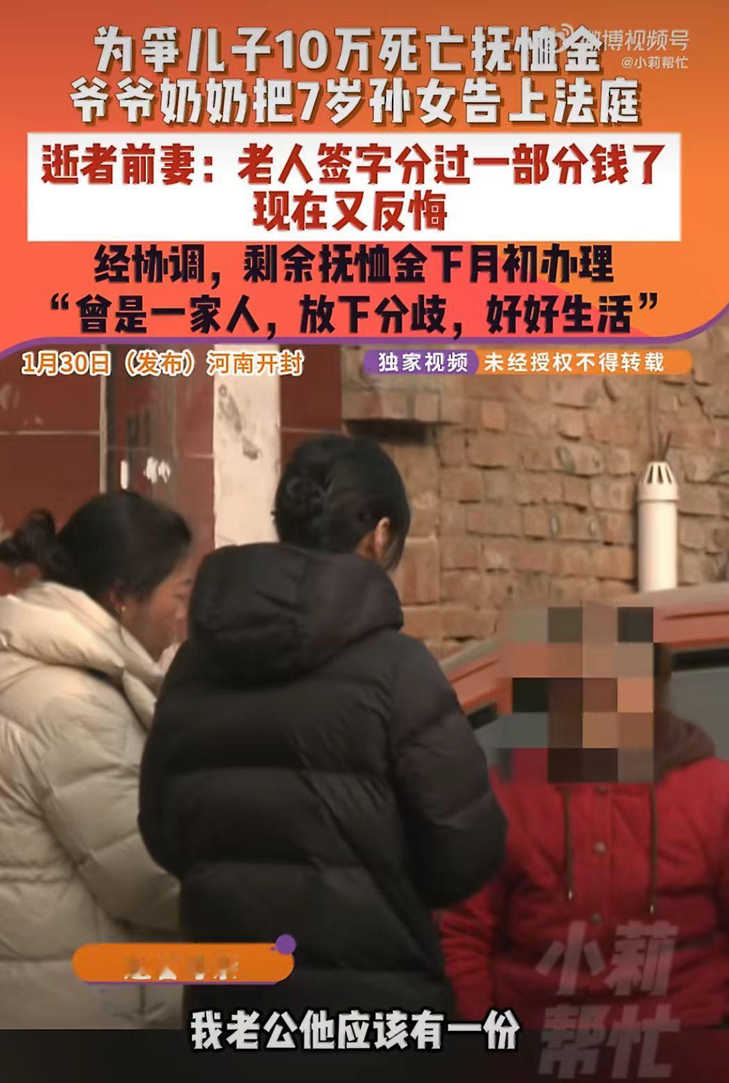 离婚5天后,丈夫自杀身亡。 为了10万元抚恤金,爷爷把7岁的孙女告上法庭。