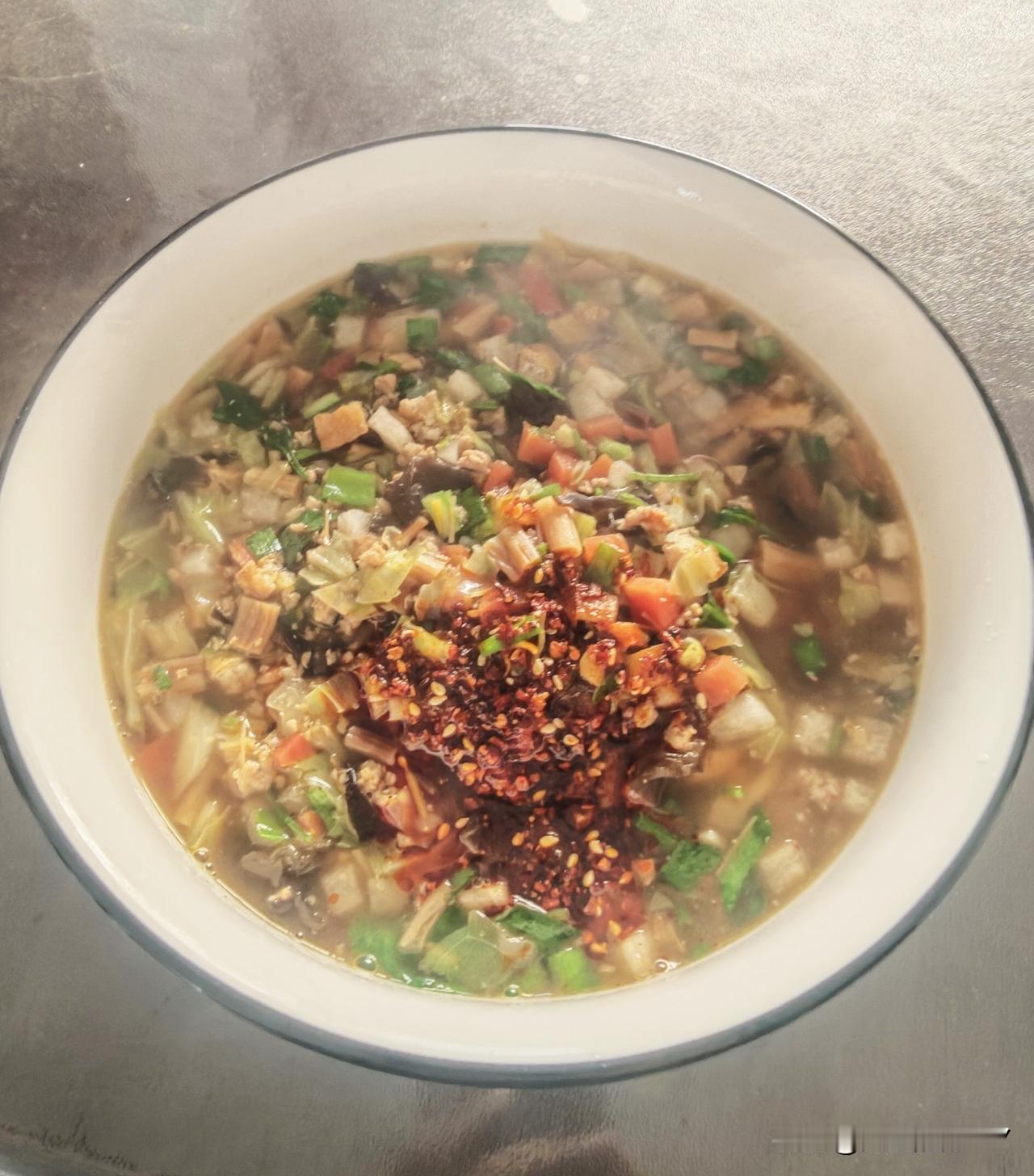 今天在家做了一碗,只有过事才吃的臊子面,咋感觉没有过事时候的好吃。可能因为过事时候人特别多,大家都吃觉得香吧!