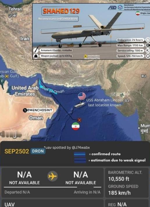 美军航母或进入“幽灵模式”,伊朗无人机深入阿拉伯海搜索敌踪 随着爱泼斯坦案的文件曝光,美国与伊朗发生军事冲突的可能性骤然增加,外界普遍猜测,美国和以色列急需通过发动外部战争来转移舆论焦点,而伊朗,自然是最佳目标。 根据外网的开源情报,截至2月2日,美军“林肯”号核动力航母疑似已经进入了“幽灵模式”,即编队关闭了应答器并保持完全无线电静默。这是美军发起进攻前的常见态势,意味着这支航母编队正在隐藏行踪,以便随时发起攻击。 伊朗人现在头疼的是,他们的无人机能搜到阿拉伯海的商船,却摸不清航母编队的位置。要知道,波斯湾最窄处才56公里,美军航母若贴近阿曼湾,伊朗反舰导弹的反应时间会被压缩到以分钟计算。 2025年空袭核设施的“午夜铁锤”行动,林肯号就玩过这招——先隐身逼近,再突然释放舰载机。这次故技重施,摆明了是要复刻“先致盲、后打击”的套路。 但美军的算盘不止是隐蔽。关闭AIS的同时,中央司令部高调宣布航母已进入中东防区,这种“半遮半露”的操作,本质是心理战。 伊朗革命卫队1月21日深夜紧急转移导弹,就是被这种“不知道威胁何时来”的恐惧逼的。就像你知道有人持刀在暗处,只能整夜攥着钥匙不敢睡——美军要的就是这种让对手资源分散的效果。 这里有个关键细节:林肯号原本在南海执勤,临时调往中东导致西太平洋出现航母真空。美军11艘航母里,常年只有3-4艘能随时打仗,这次拆东墙补西墙,暴露了全球部署的极限。 所谓“幽灵模式”,某种程度上也是兵力不足的遮羞布——既然派不出更多军舰,那就让仅有的航母“消失”,用未知感放大威慑力。 伊朗不是没反击手段。他们的“霍尔木兹”导弹射程覆盖波斯湾,去年还在阿曼湾试过打移动靶船。但问题在于,美军航母战斗群有三层防空网:外层F-35C前出拦截,中层驱逐舰宙斯盾系统,内层电子战飞机干扰。 伊朗无人机就算发现踪迹,导弹能否突破层层防御,连他们自己都没底。这种不对称的军力差距,让伊朗只能通过媒体喊“准备摧毁航母”,实际却在偷偷转移关键装备。 更微妙的是时间窗口。爱泼斯坦案文件曝光后,美国国内舆论沸腾,特朗普政府急需外部事件转移视线。 但真打起来,中东石油通道一旦瘫痪,国际油价可能飙升到120美元,全球经济跟着遭殃——这对刚复苏的美国制造业可不是好事。所以林肯号的静默,更像是给伊朗划红线:要么在核谈判让步,要么承受有限打击。 现在阿拉伯海上的僵局,像极了两个人在黑暗中对峙。美军知道伊朗不敢先动手,伊朗明白美军承受不起全面战争。林肯号的“幽灵模式”,说到底是用战术隐蔽维持战略威慑,既不想真打,又怕威慑失效。至于伊朗无人机还能搜多久,取决于双方谁先熬不住——毕竟,在波斯湾的夜色里,谁先亮灯,谁就输了先手。