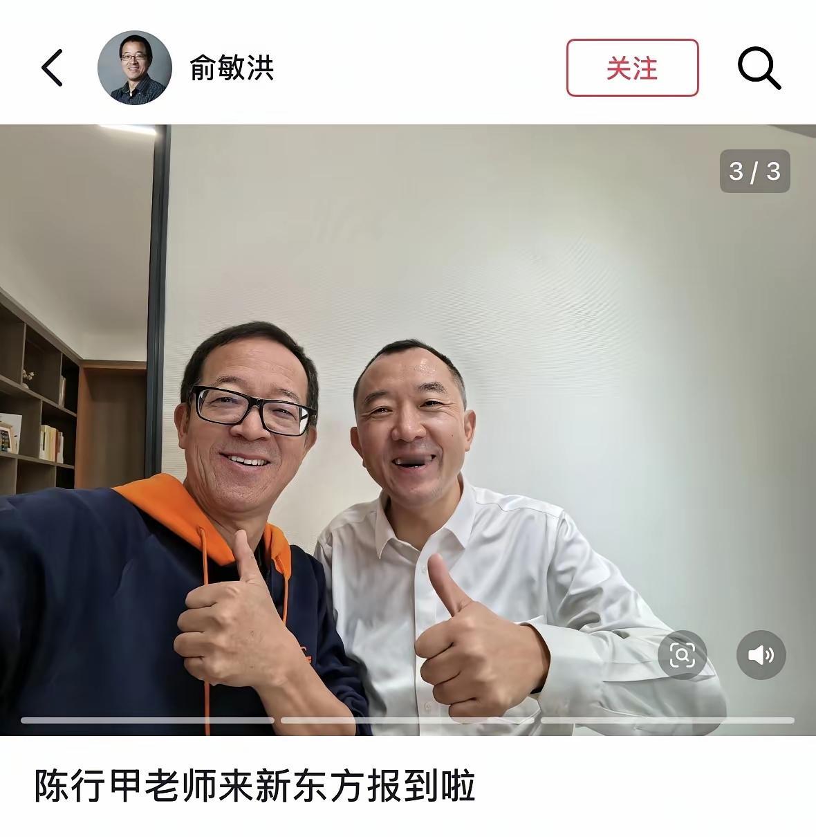 陈行甲加盟新东方,他能做什么? 今天俞敏洪和周成刚都发社媒宣布,陈行甲正式加盟