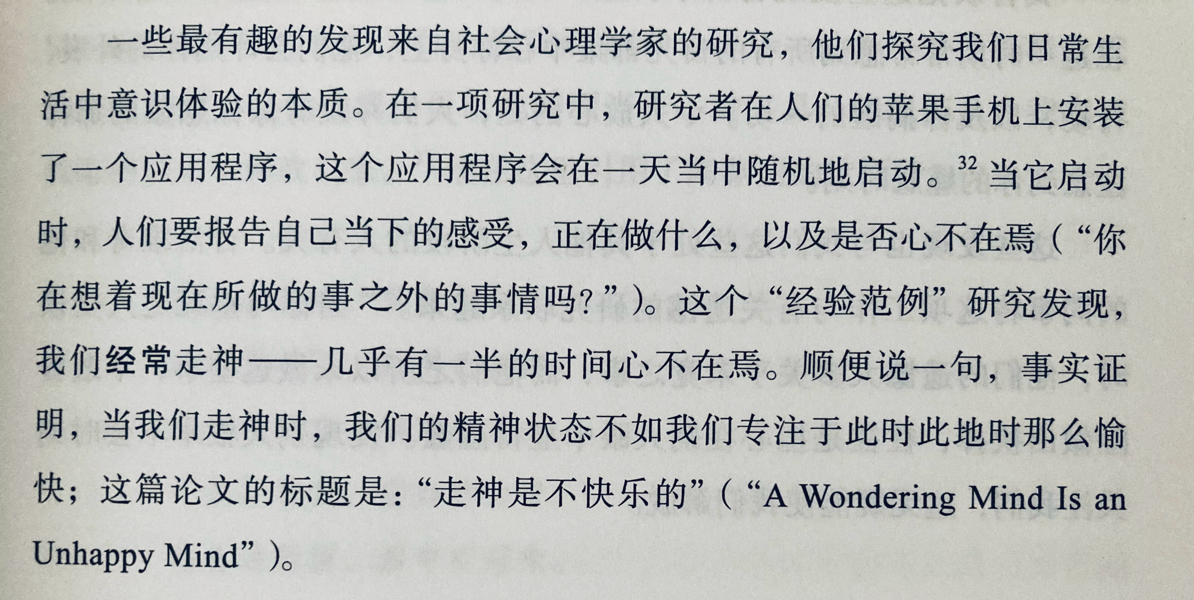 “走神是不快乐的”——嗯,喜欢这个观点