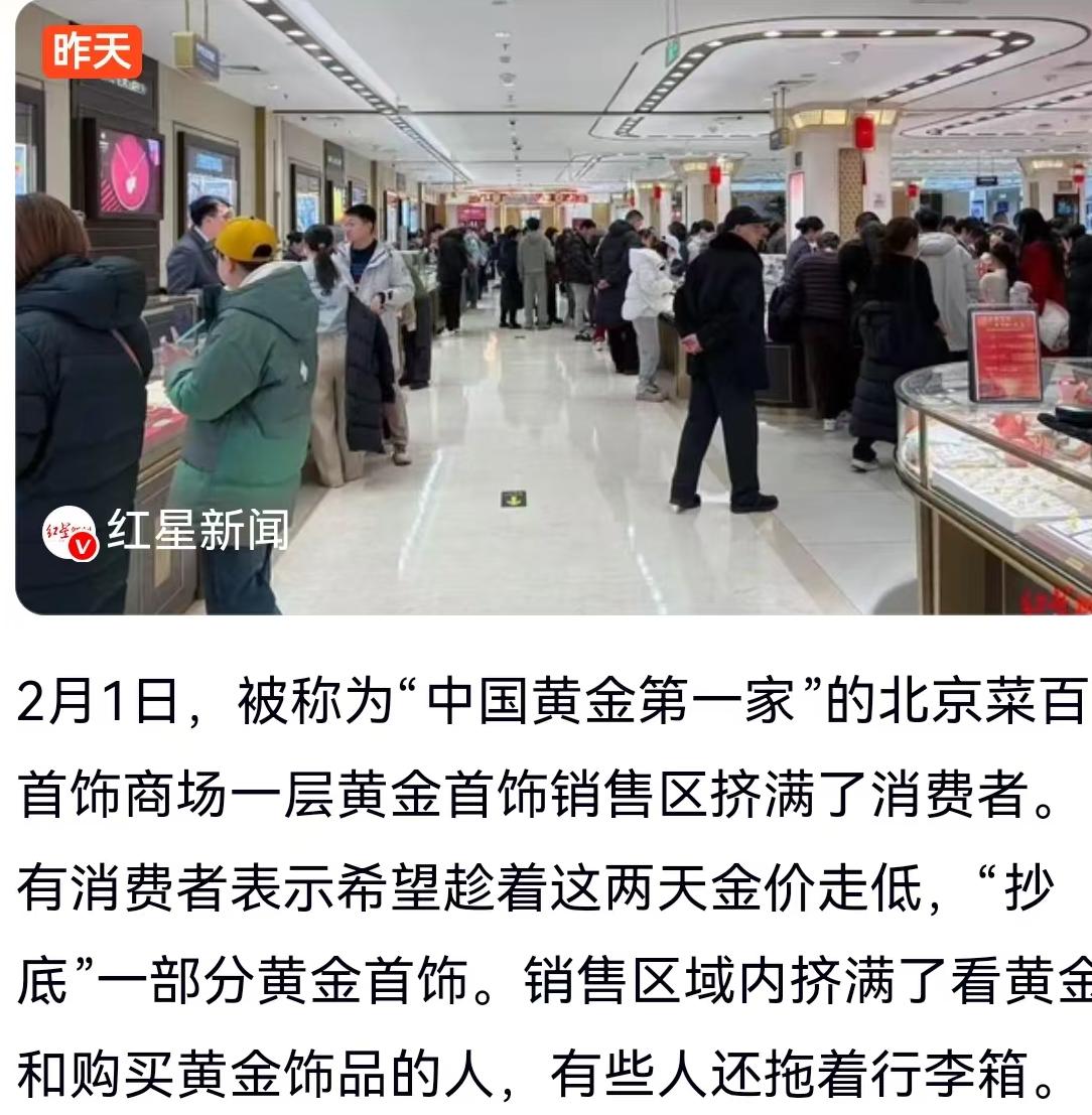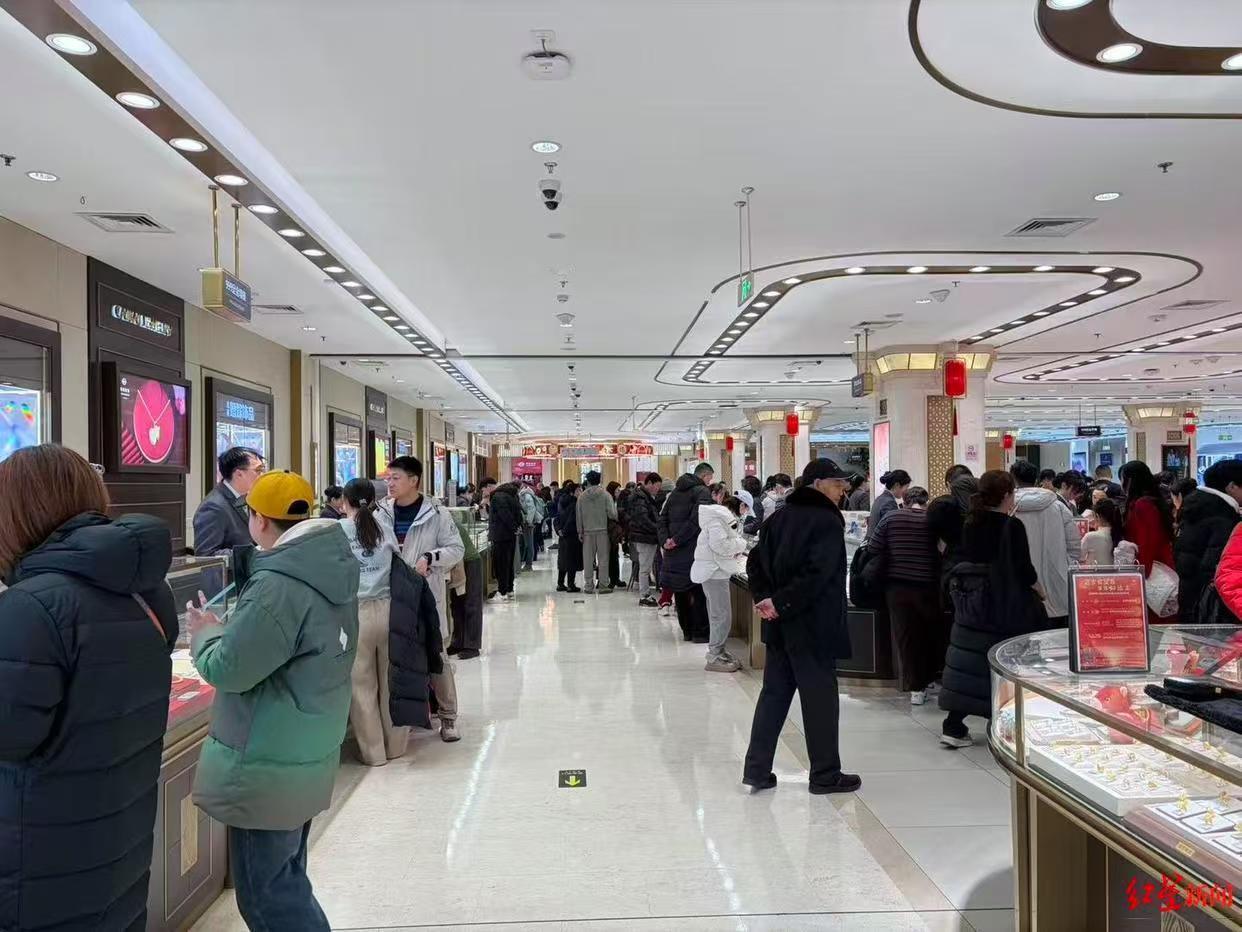 2月1日,北京菜百首饰商场一层的景象成了当下市场情绪最直观的缩影。这家有着“中国