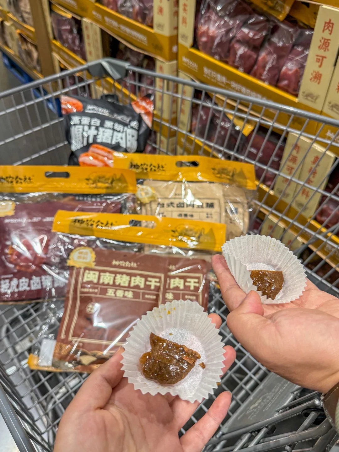 节前来开市客采购年货🎁 被人挤人的试吃队伍吸引到了 原来是新品路演试吃真大方👍 猪肉肠、猪肉干、猪蹄、卤肉豆脯… 超大包分量十足肉感扎实 买了猪肉干里面🈶六大包 嚼劲十足越嚼越香🤤 五香味接受度高小朋友也爱吃 又囤了几包准备过年🧨去送礼 新年送礼送长辈好物开市客年货年猪礼盒2026新年礼盒猪肉干年货清单闽南猪肉干肉干天花板Costco新品无限回购清单