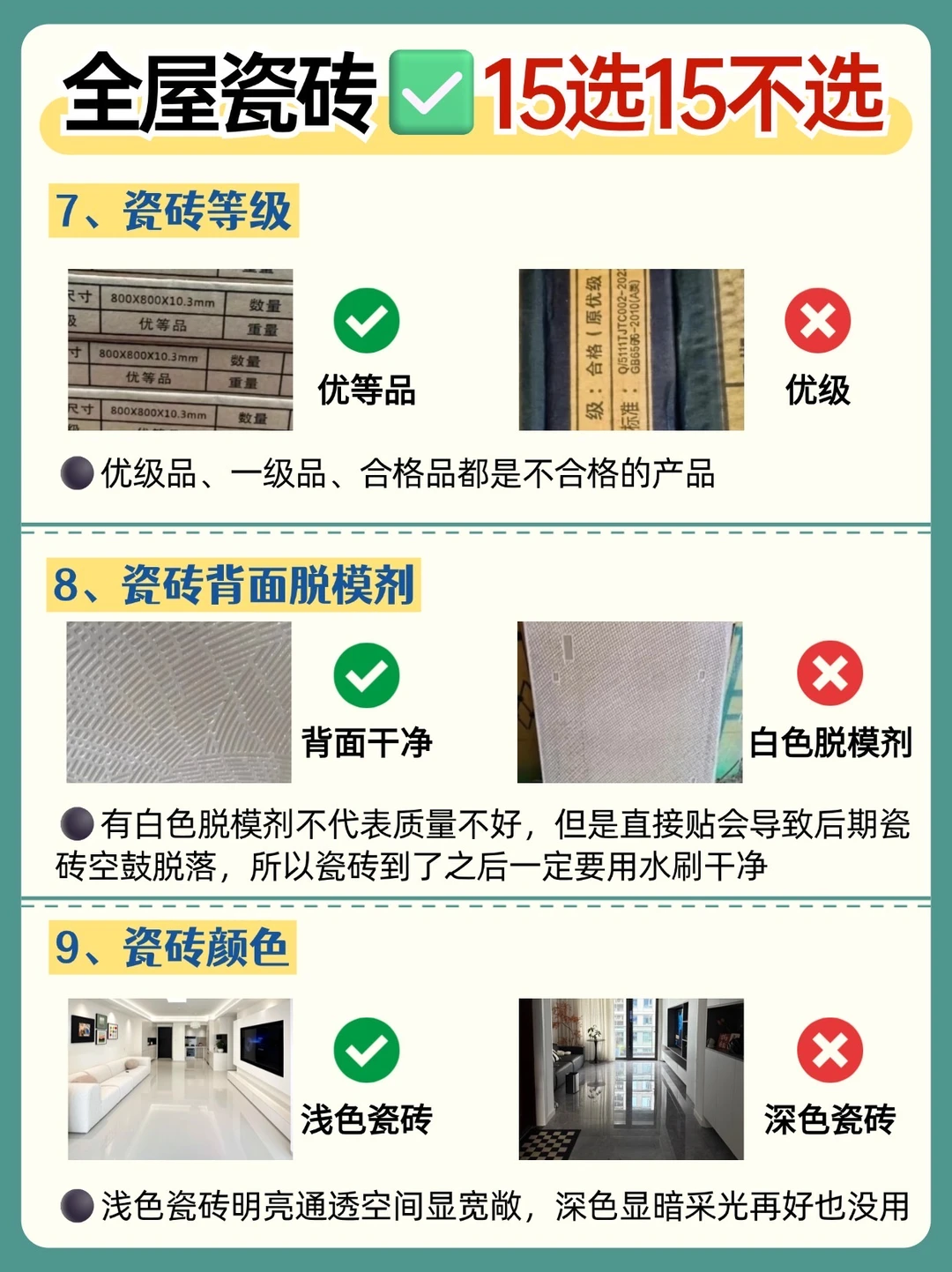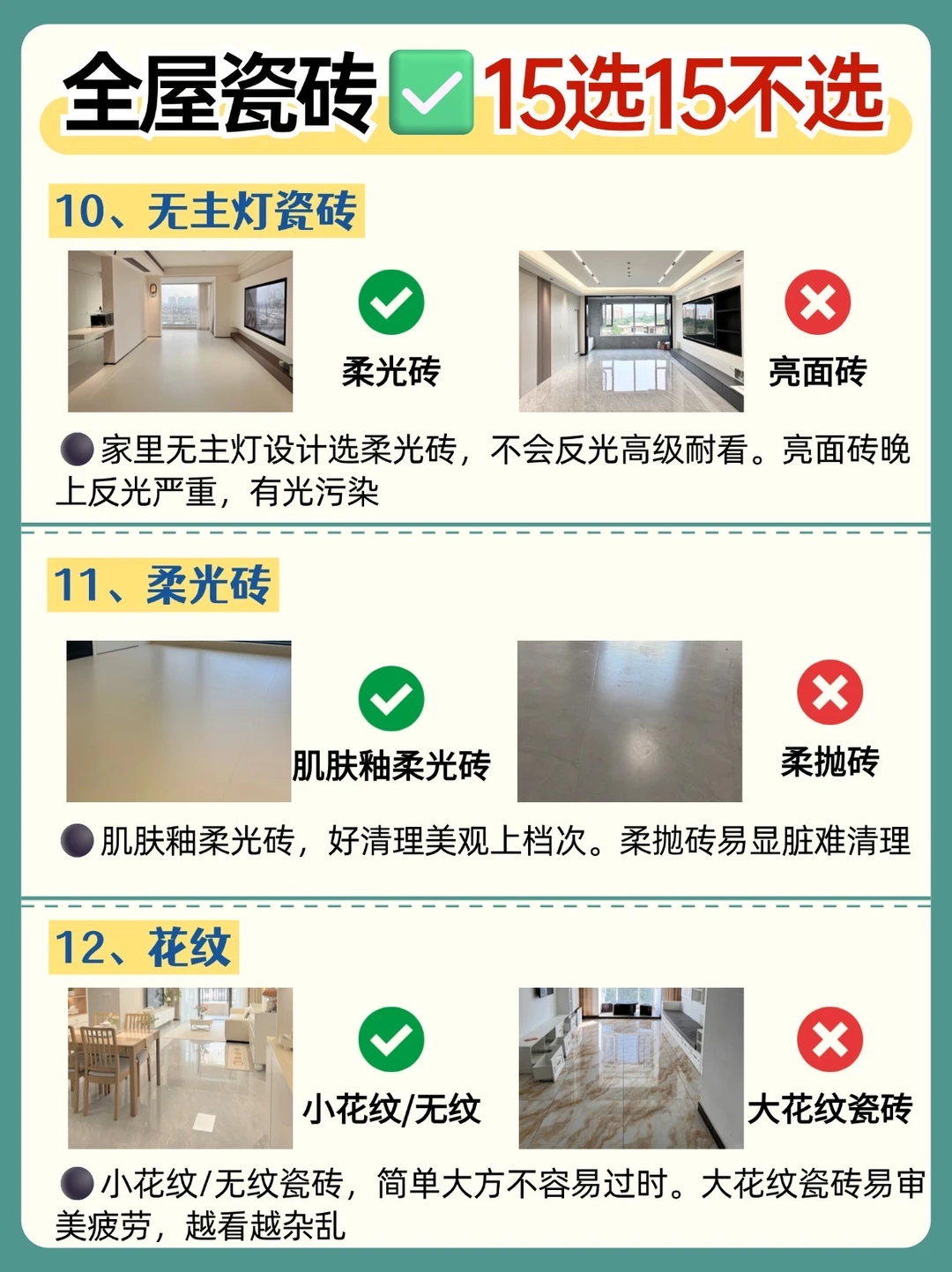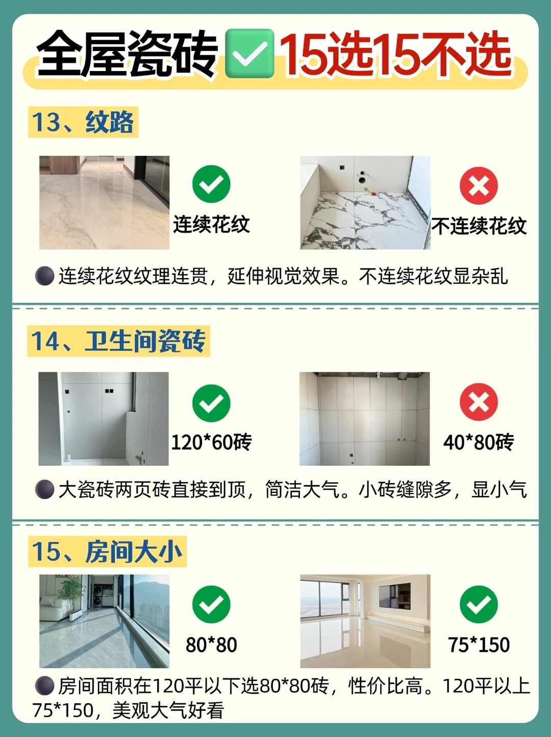 全屋瓷砖不踩坑👉牢记15选15不选❗️