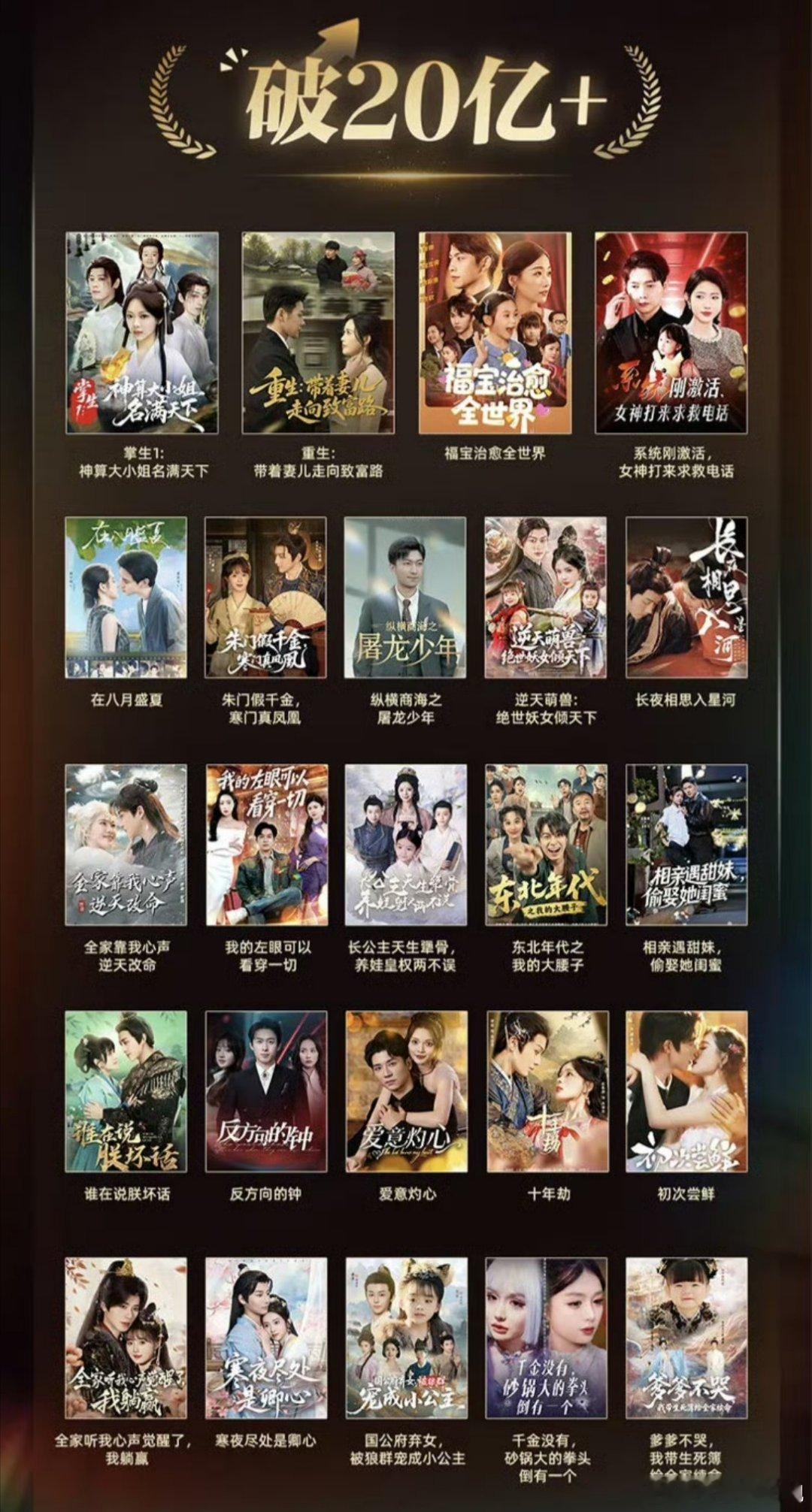 红🍎25年的爆款🈶,你看过哪些短剧?破30亿的三部:《心动请还告诉我》《我被老板深深溺爱》《穿书之炮灰变身天道亲闺女》破20亿的有24部!25年的成绩真的很不错