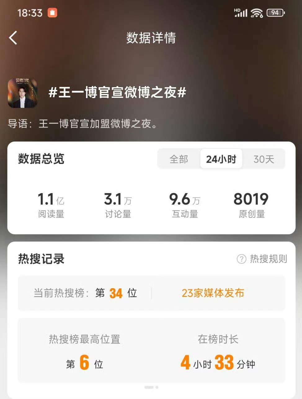 严谨一点,全部带tag,2026年2月2日18:33的截图,二人官宣微博之夜数据