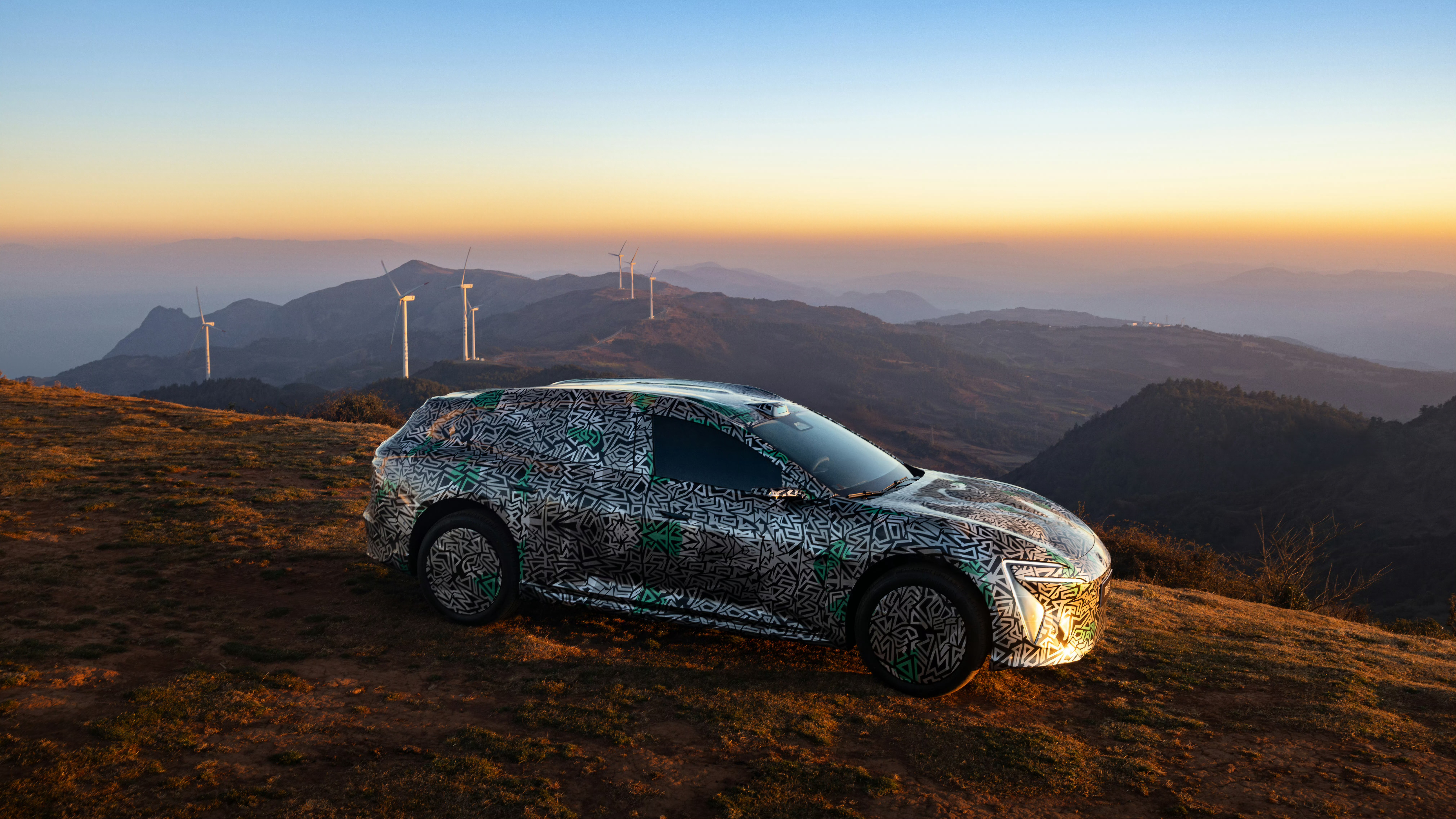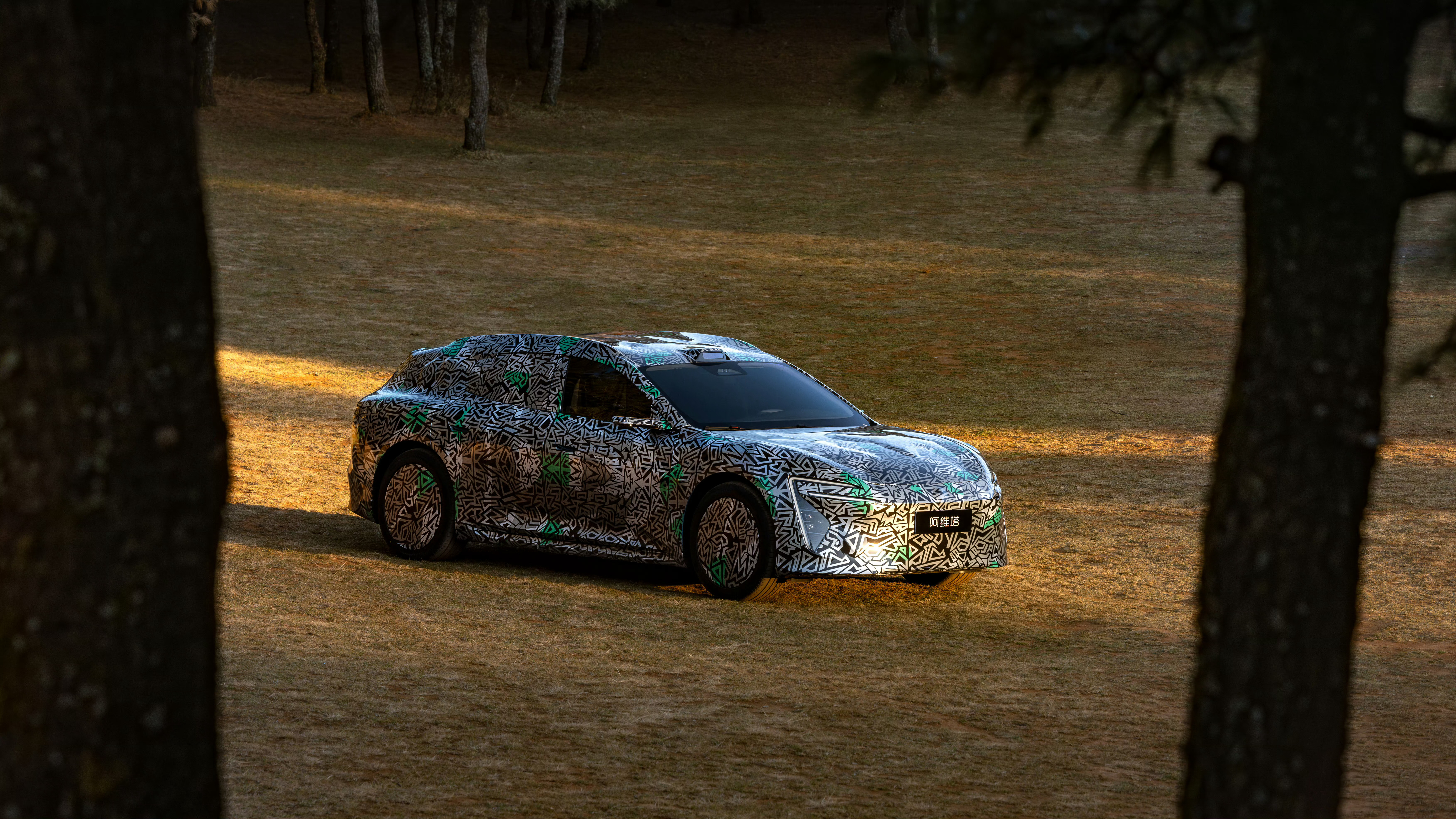 延续家族式前脸与贯穿式尾灯设计,虽然有着伪装,但低趴修长的猎装姿态藏不住,门把手半隐藏式,车顶可拆卸行李架。还有电子外后视镜、激光雷达!