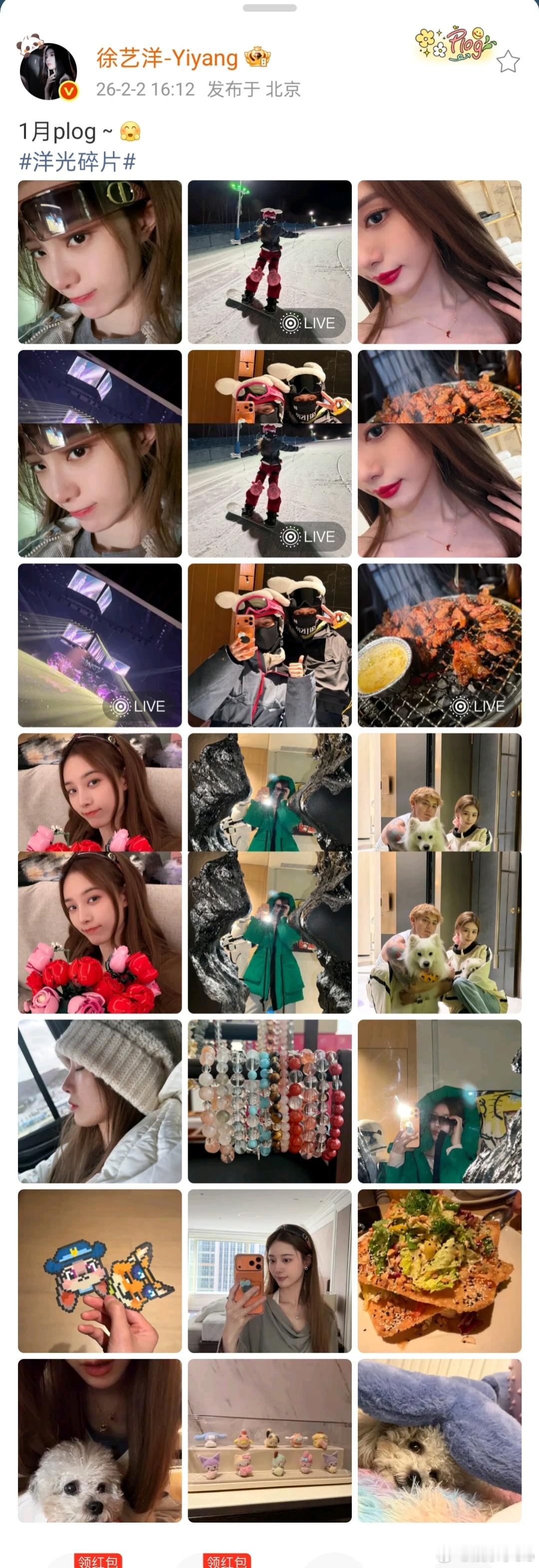徐艺洋一口气发了18张自己的一月plog,里面有她和黄子韬去看王鹤棣演唱会的返图还有她和黄子韬一起去滑雪的照片!!